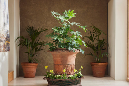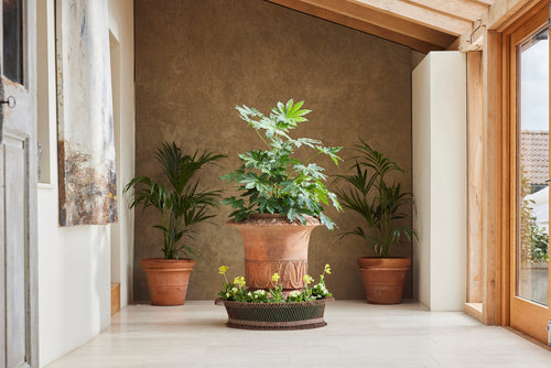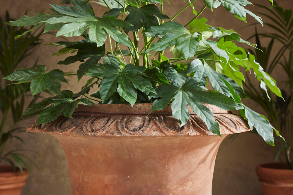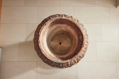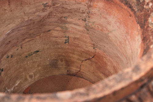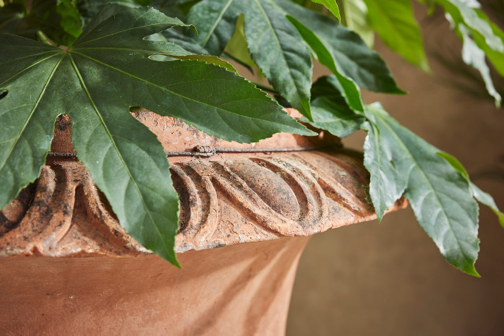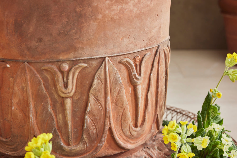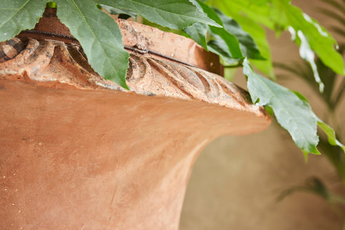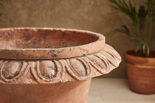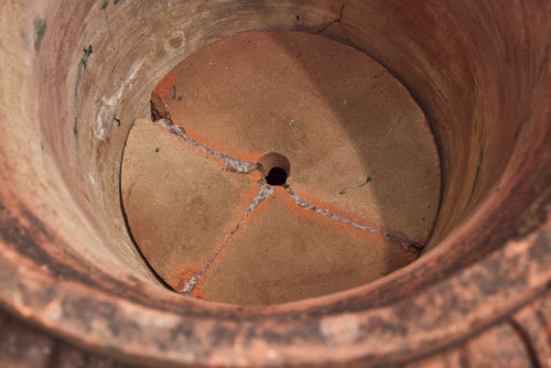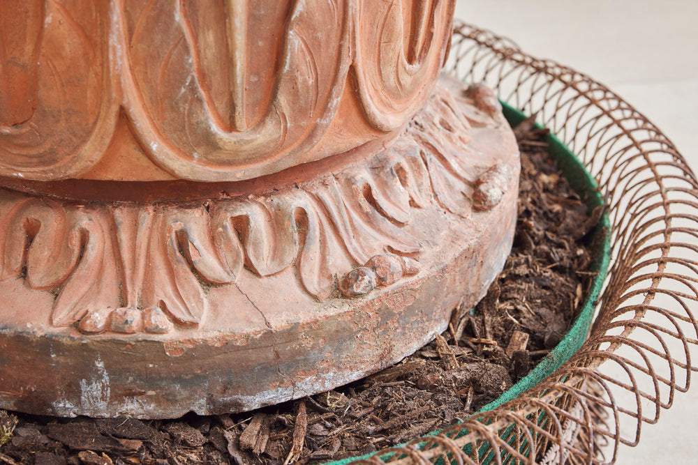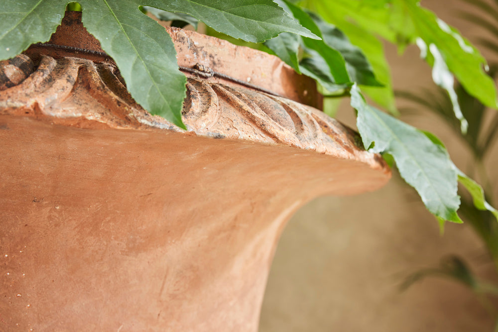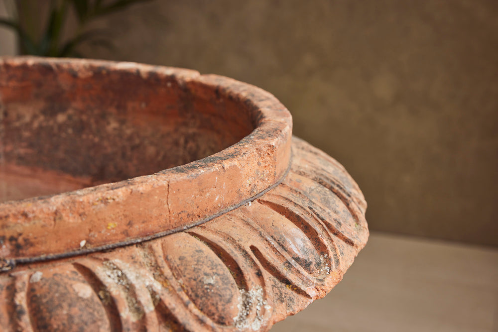The terracotta has some old cracks, repairs and chips associated with age and use. None of these detracts from the overall appearance of the urn, which is structurally sound in all regards.