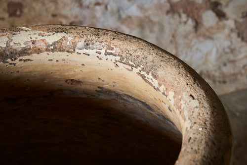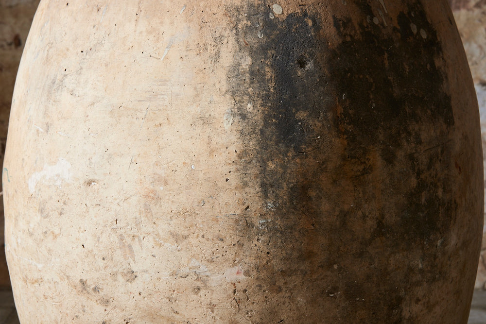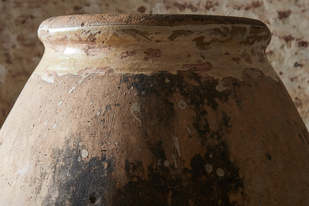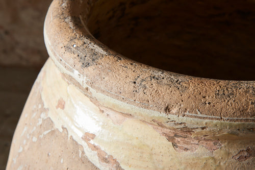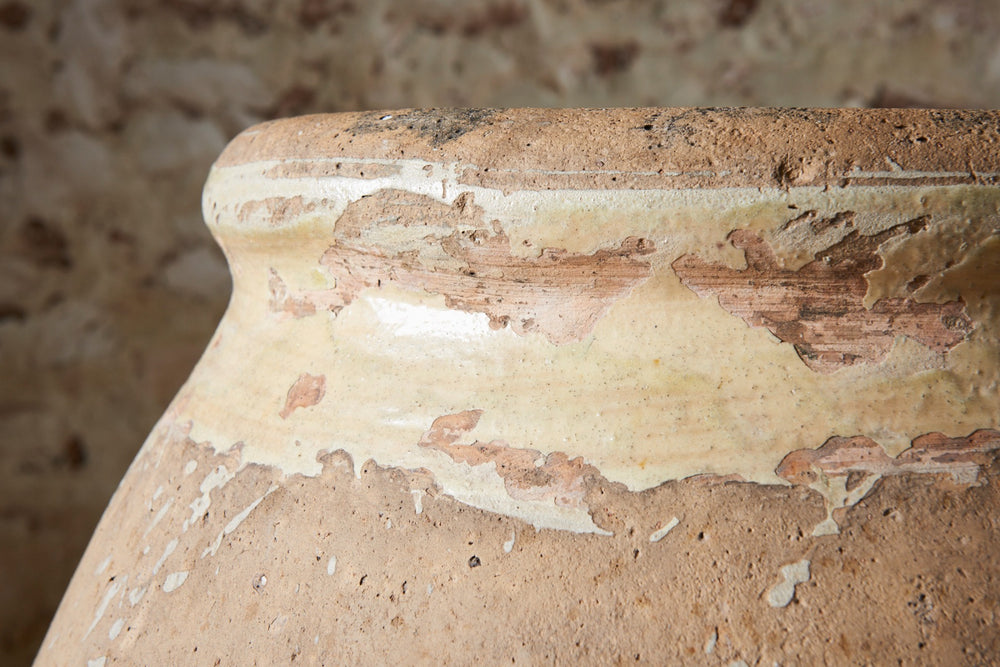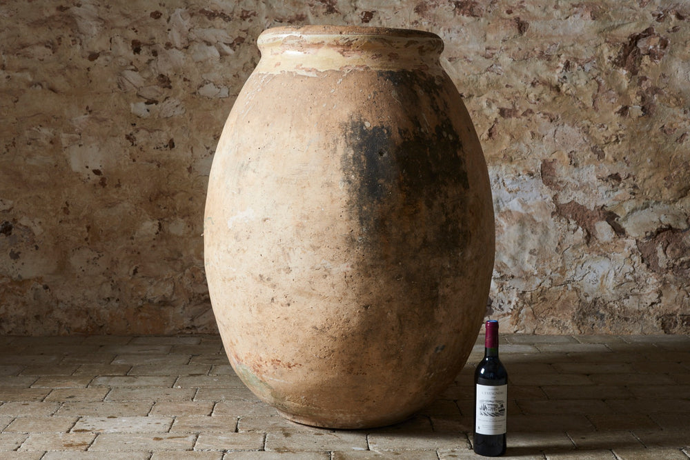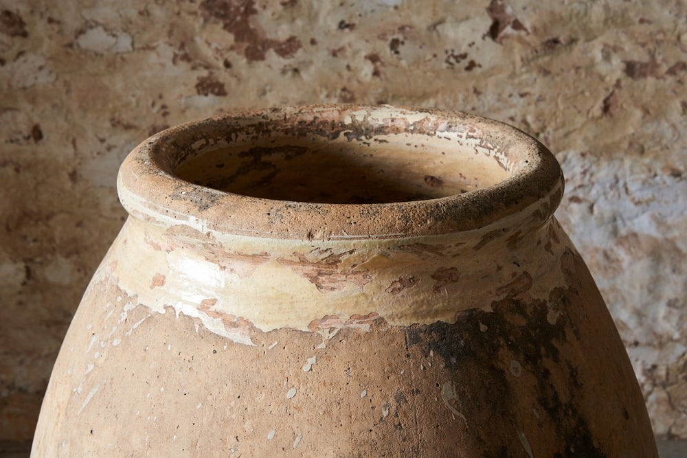The jars were used to preserve olives or store flour. These days, they are good for displaying the other type of "flower"! This is a particularly attractive biot jar, in lovely warm shades.