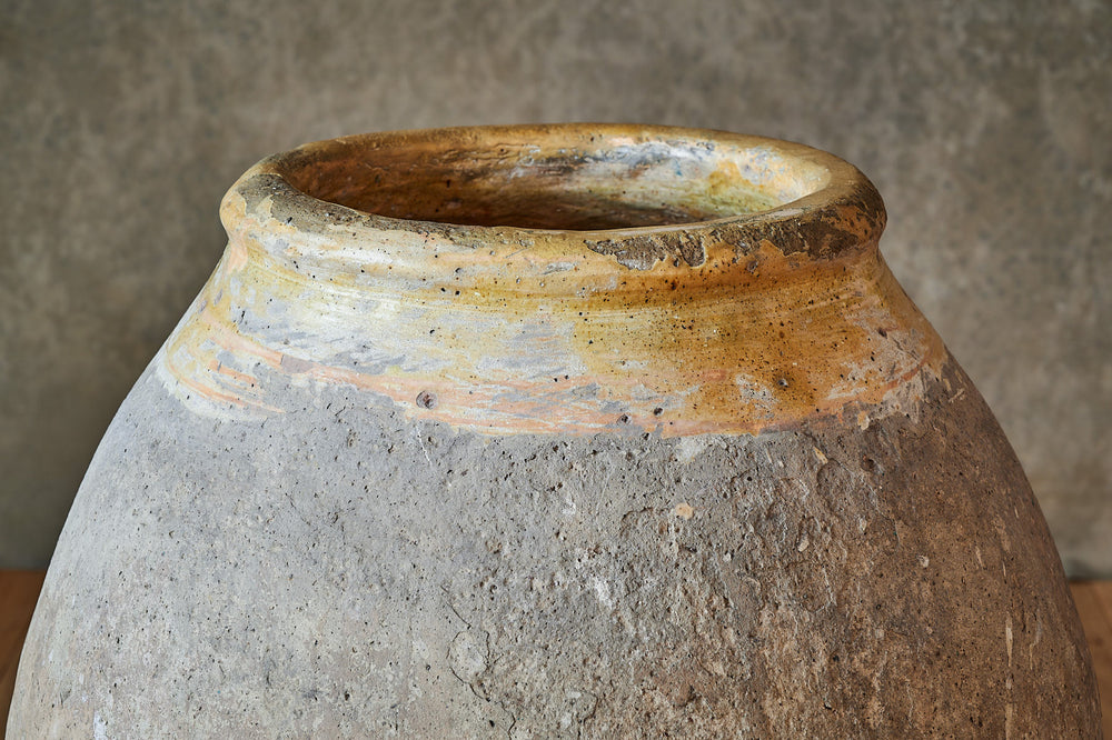 "Jarres de Biot" (biot jars) are hand made from a mixture of red and grey clay and were used to preserve olives or store flour. This particularly attractive example could be used decoratively in the home or as a planter in the garden.