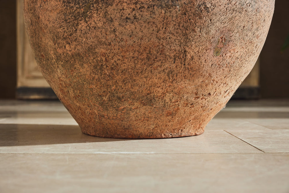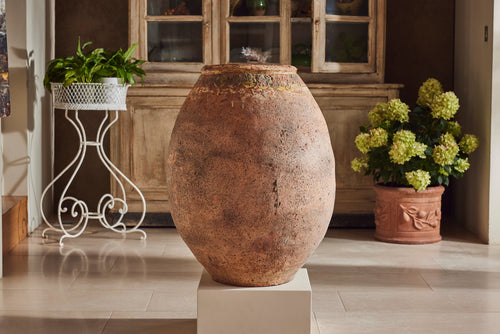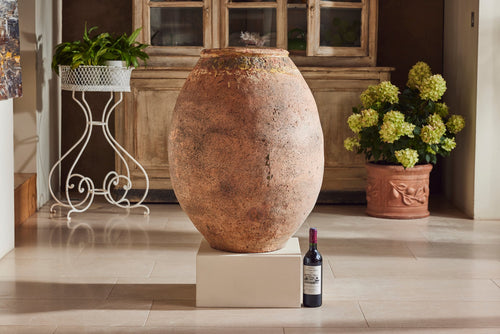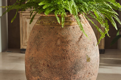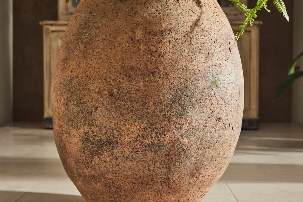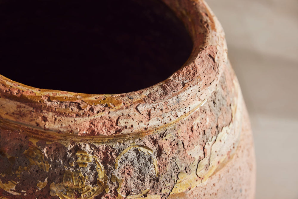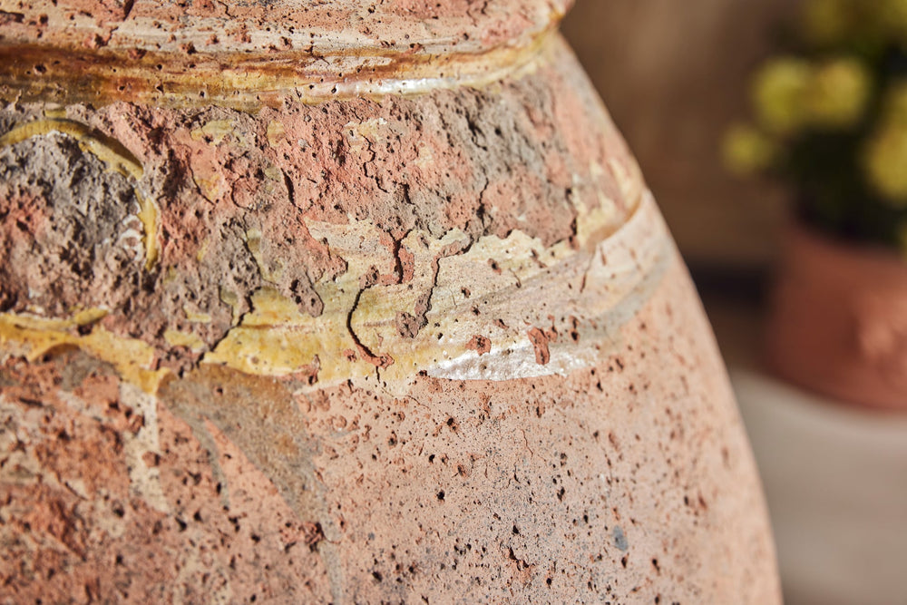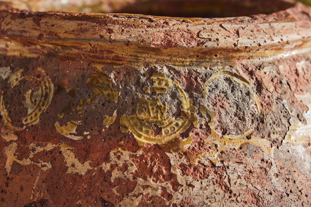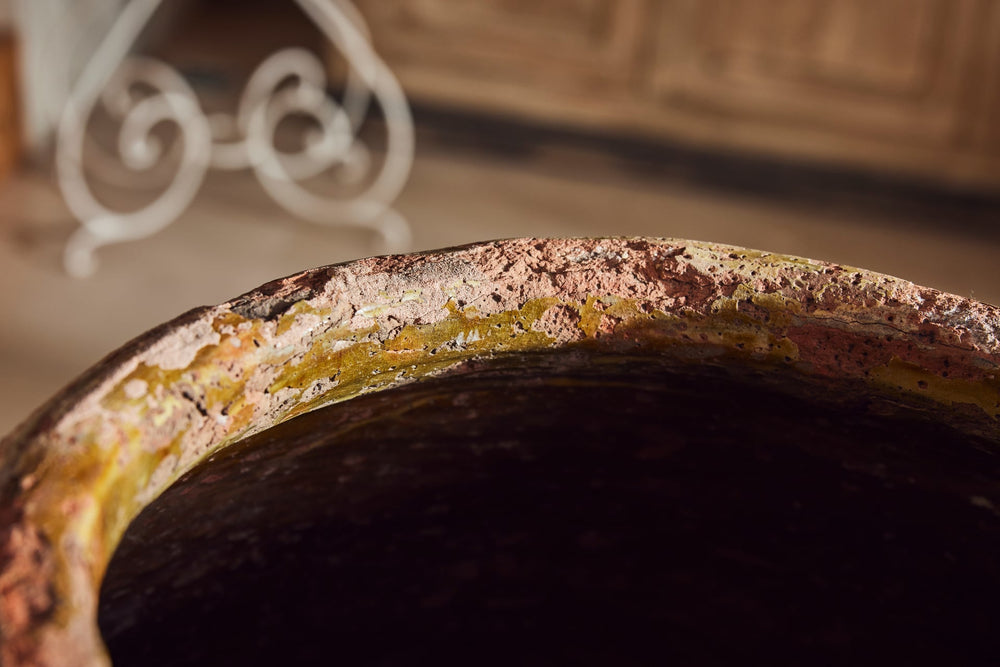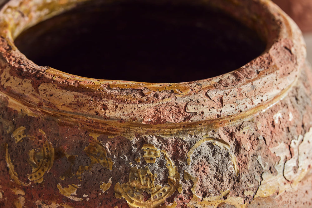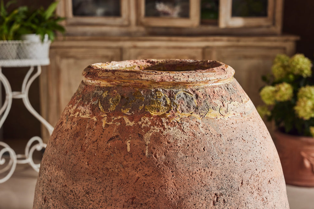 "Jarres de Biot" (biot jars) are handmade from a mixture of red and grey clay and were used to preserve olives or store flour. This one is particularly attractive with the stamps of the original maker still seen in the glaze around the rim.