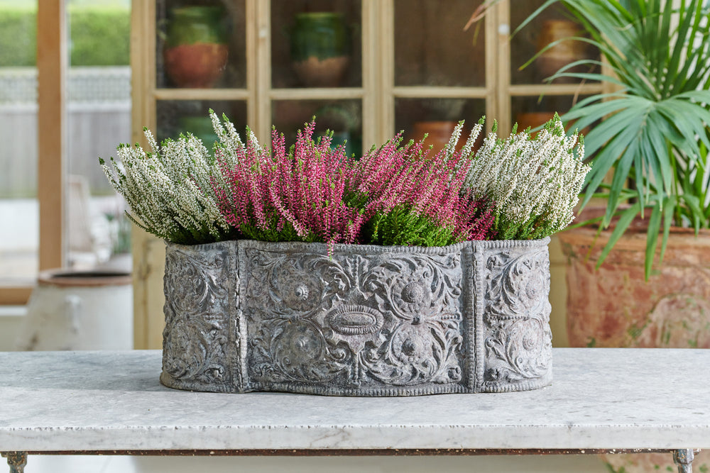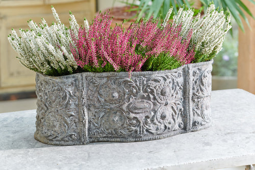 A substantial and beautifully made lead planter from the 18th century. Decorated with vine and leaf raised motifs this lovely oval planter would be a perfect gift for the gardener who has everything!
