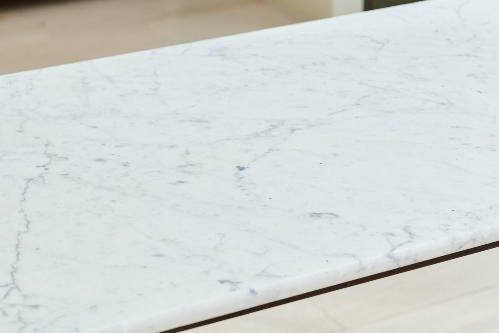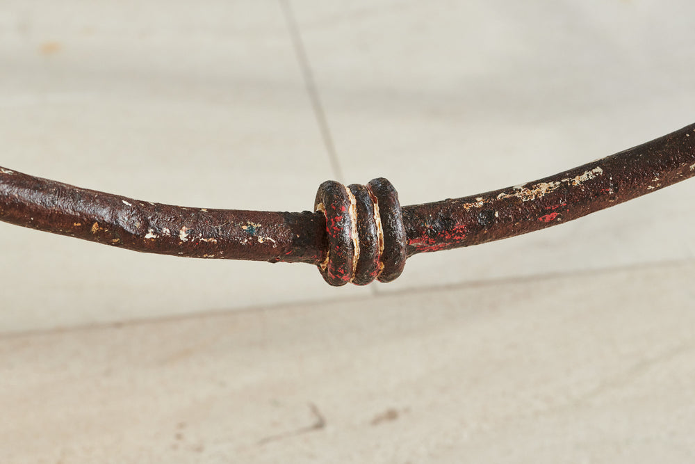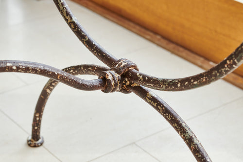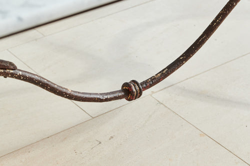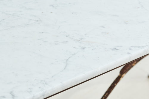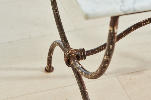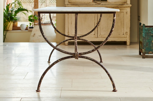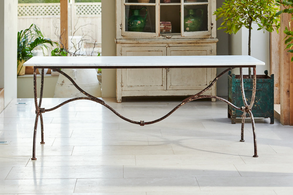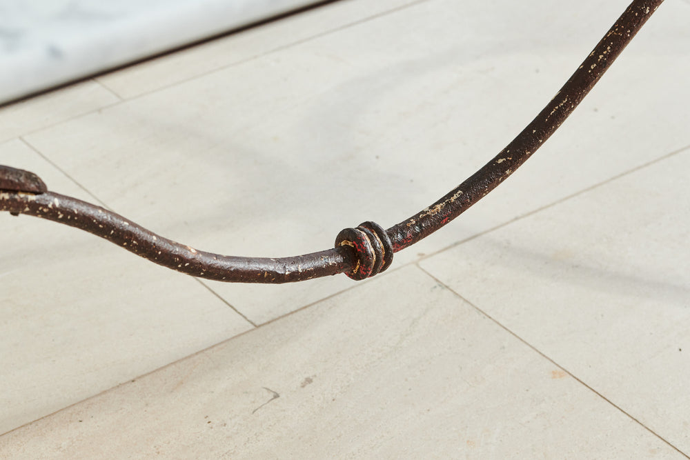 A stunning 18th-century marble-topped. What attracted us to this table was the very attractive curves of the wrought iron which from any angle really stand out for the quality of the design. Hand-forged this lovely table would easily seat six as well as making a well-proportioned console.