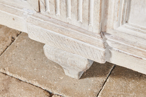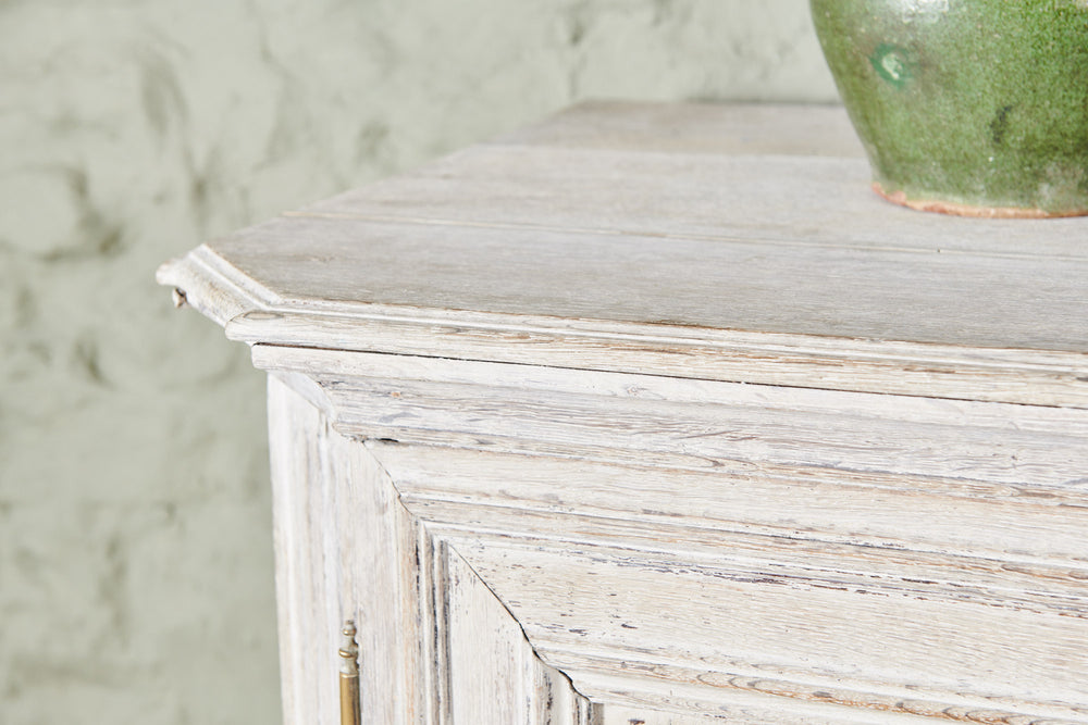 A wonderful 18th-century Flemish Buffet in limed oak. Complete with its original lock and key and in very good condition this side is as decorative as it is practical providing plenty of storage.