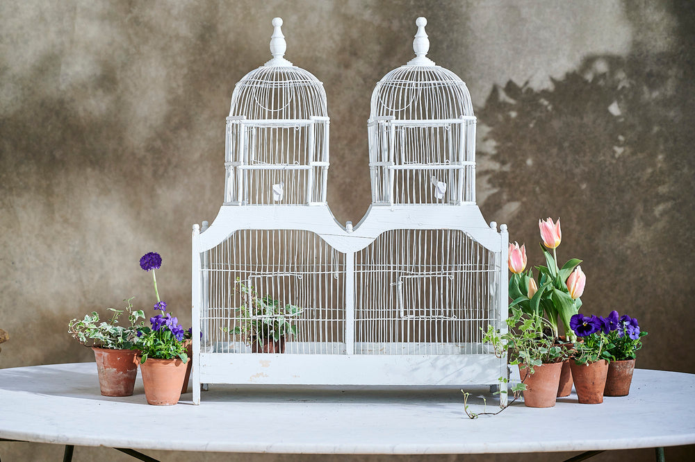 A lovely birdcage for the 1920s. We buy these as we think they look highly decorative particularly when filled with plants either sitting on a table or hung from the ceiling.