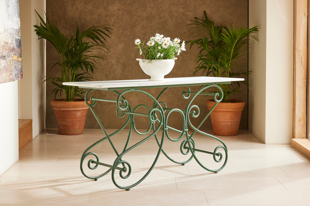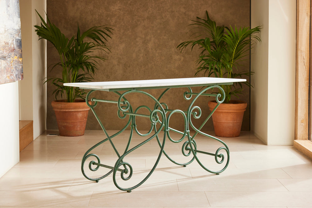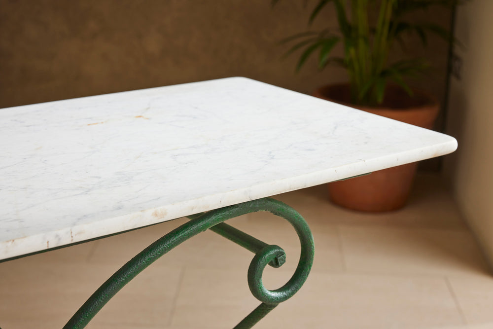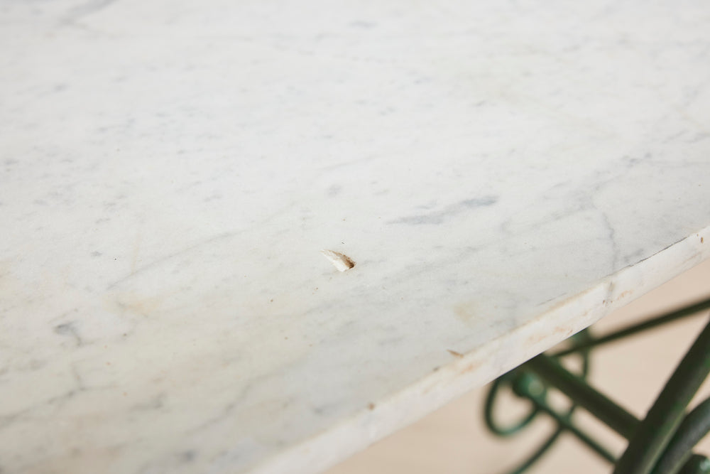 The marble on the table has some staining associated with commercial use over the years. Whilst we believe this adds character and authenticity, we can exchange the marble for new at the asking price if required.