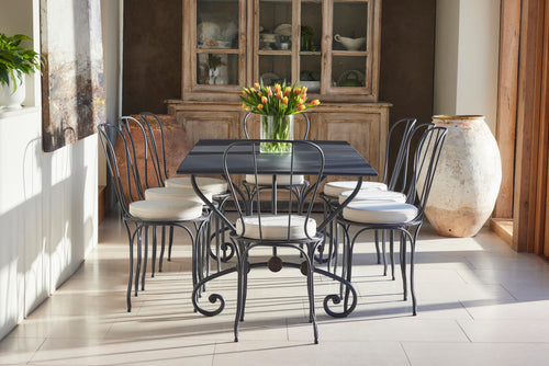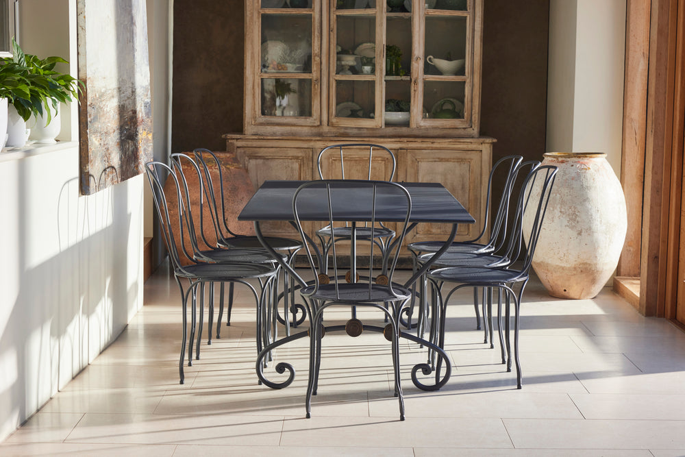 Complete with modern seat pads, this set blends classic French design with comfort and durability.