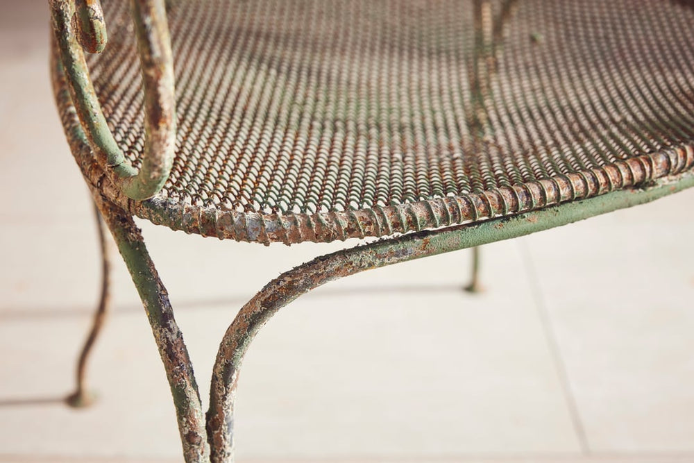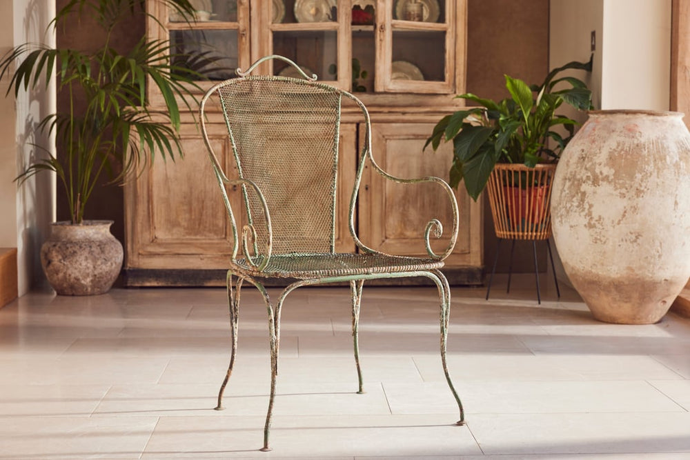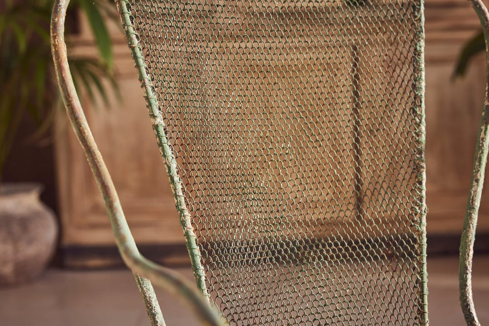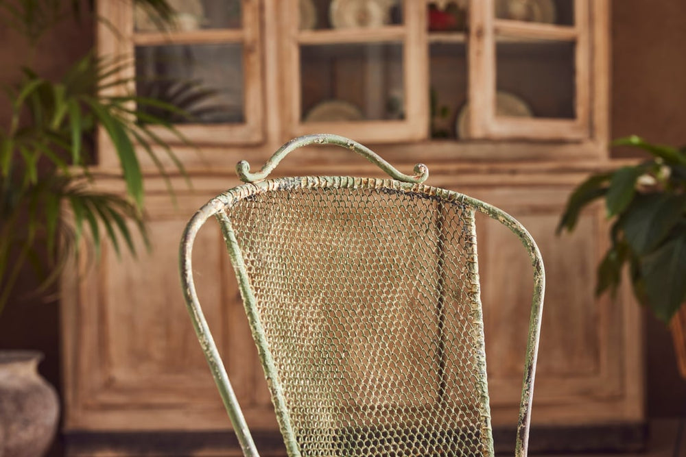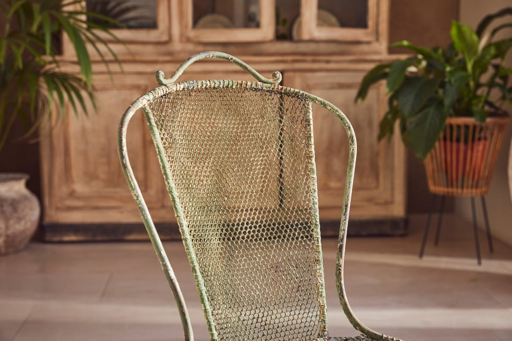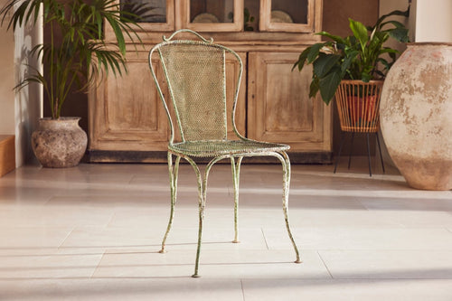 Made nearly 200 years ago, they retain original traces of green and white paint and have developed a rich, untouched patina over time. Crafted with care using rivets, clips, and wire, they reflect early garden furniture craftsmanship at its best.