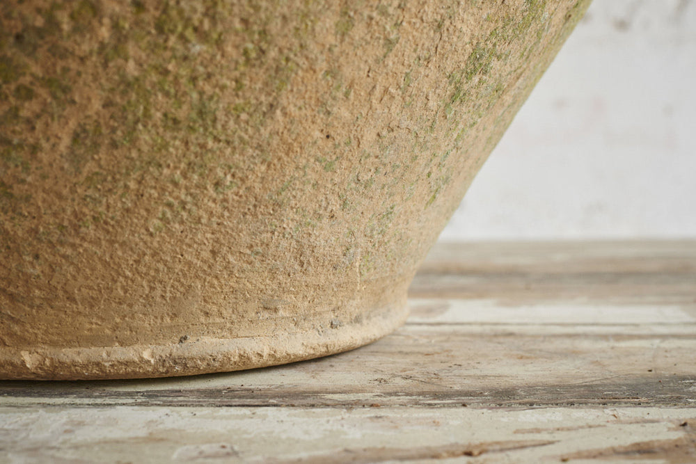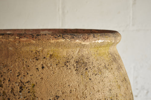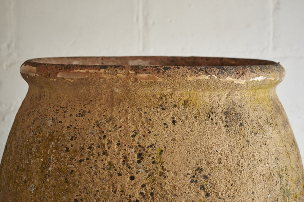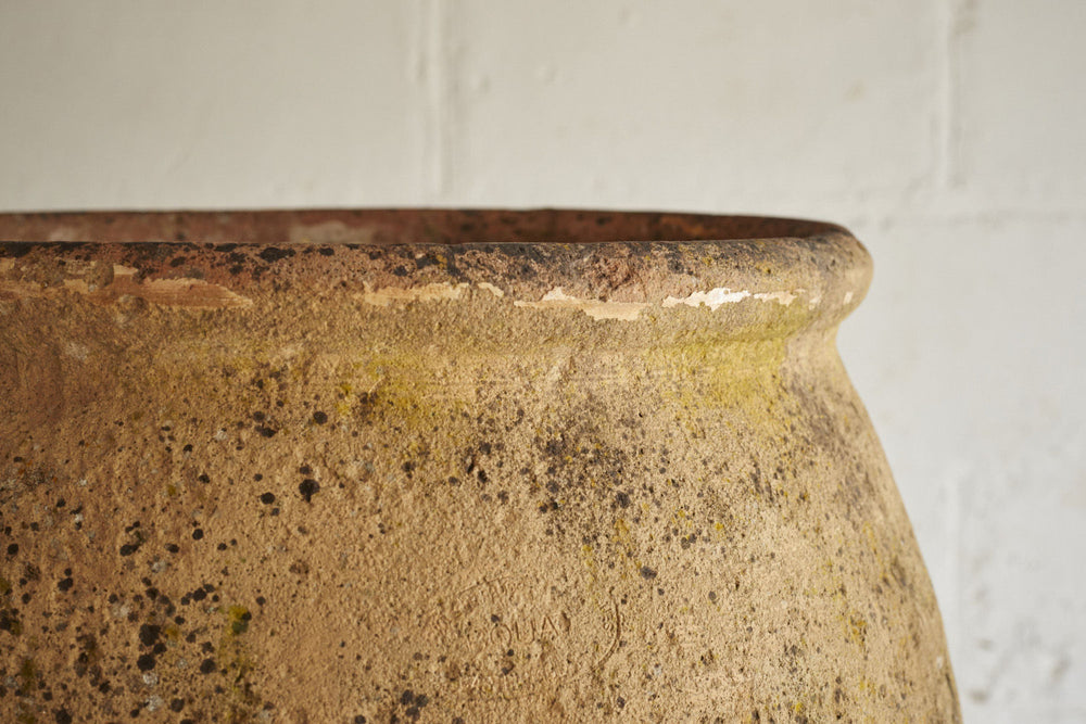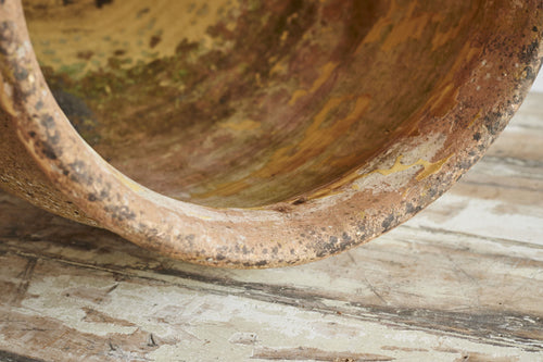 It’s amazing what you can find on a farm! This large terracotta biot jar still with remnants of glazing on the rim and the interior is very well weathered, with a really nice patina. It’s a simple shape, which lends itself to a variety of uses and planting schemes. It is large enough to offset some dramatic planting or to work as a stand-alone garden accessory.