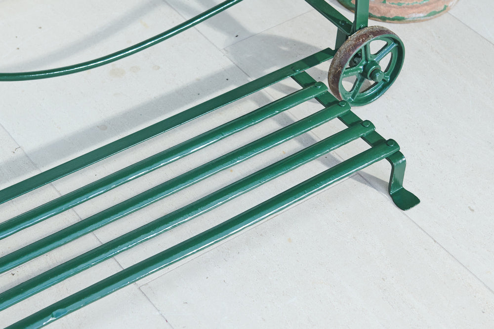 We bought this bench at auction knowing that it had been unloved for many years. We have undertaken a full blacksmith restoration transforming it back to its former glory with traditional parts and in its original colour.