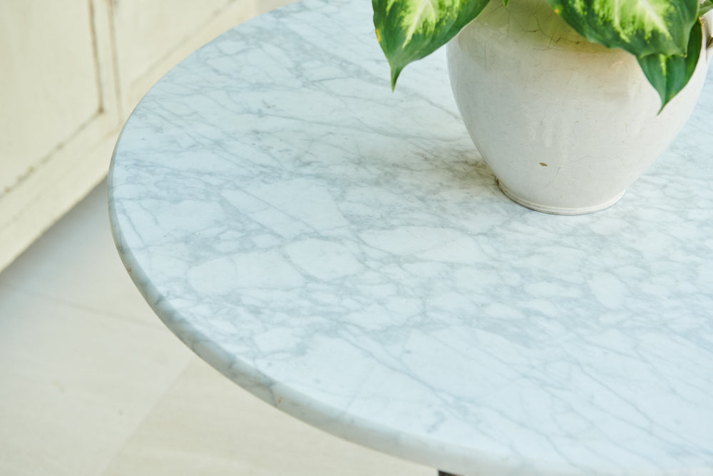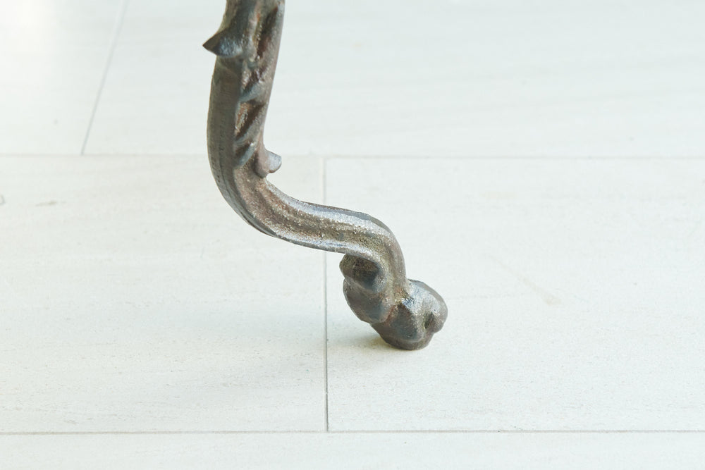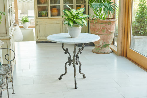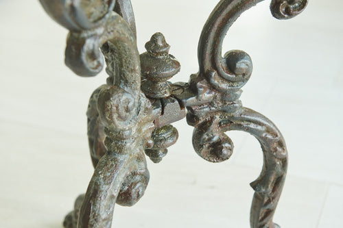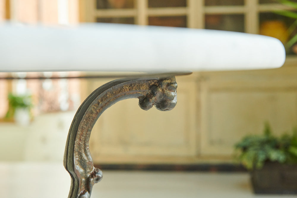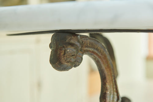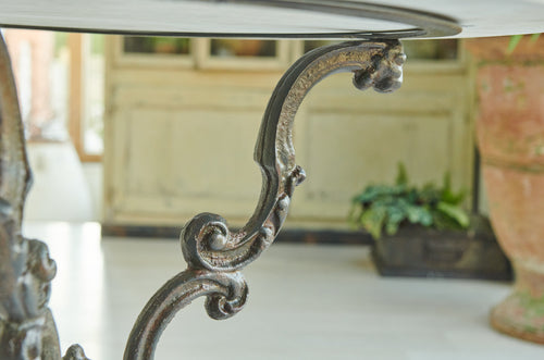A rare and very attractive 19th-century table with a very attractive decorative cast iron frame and marble top. In excellent condition, this former garden table would have many uses in the home as a small centre table, side table or lamp table.