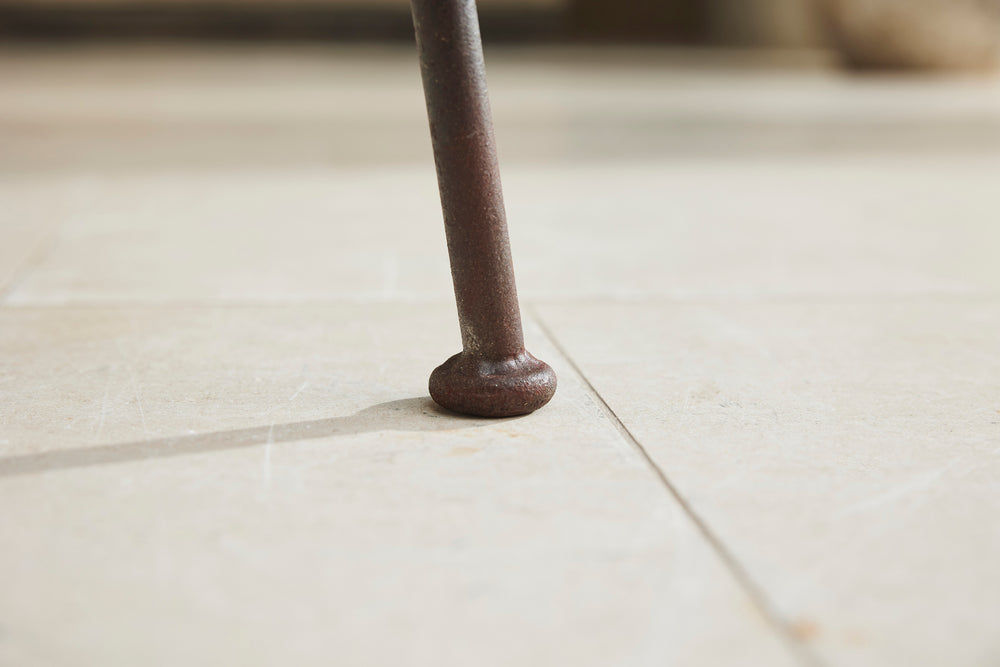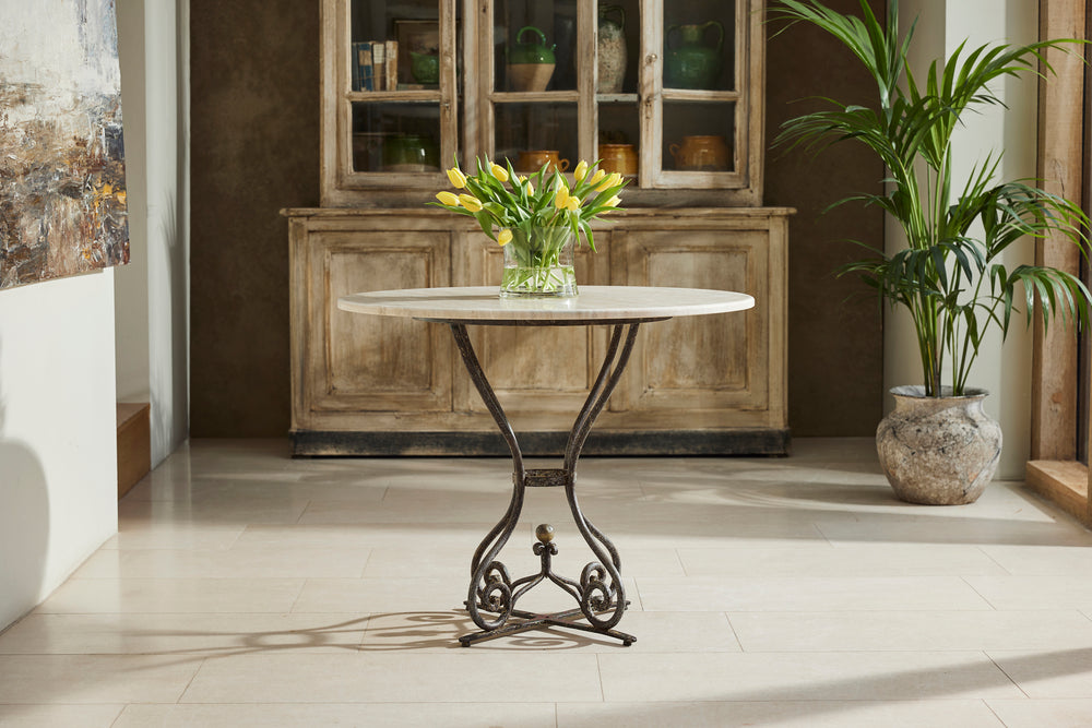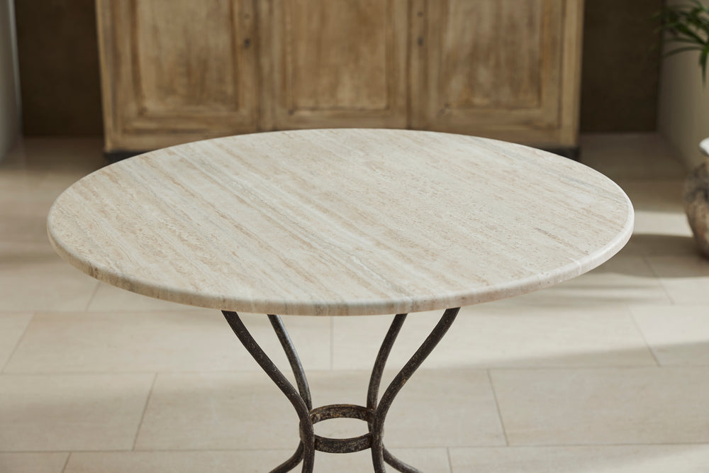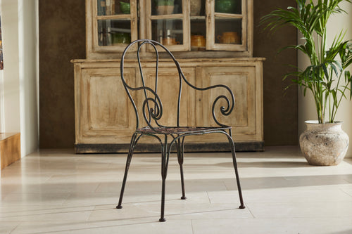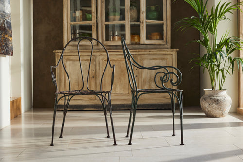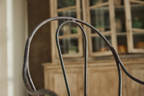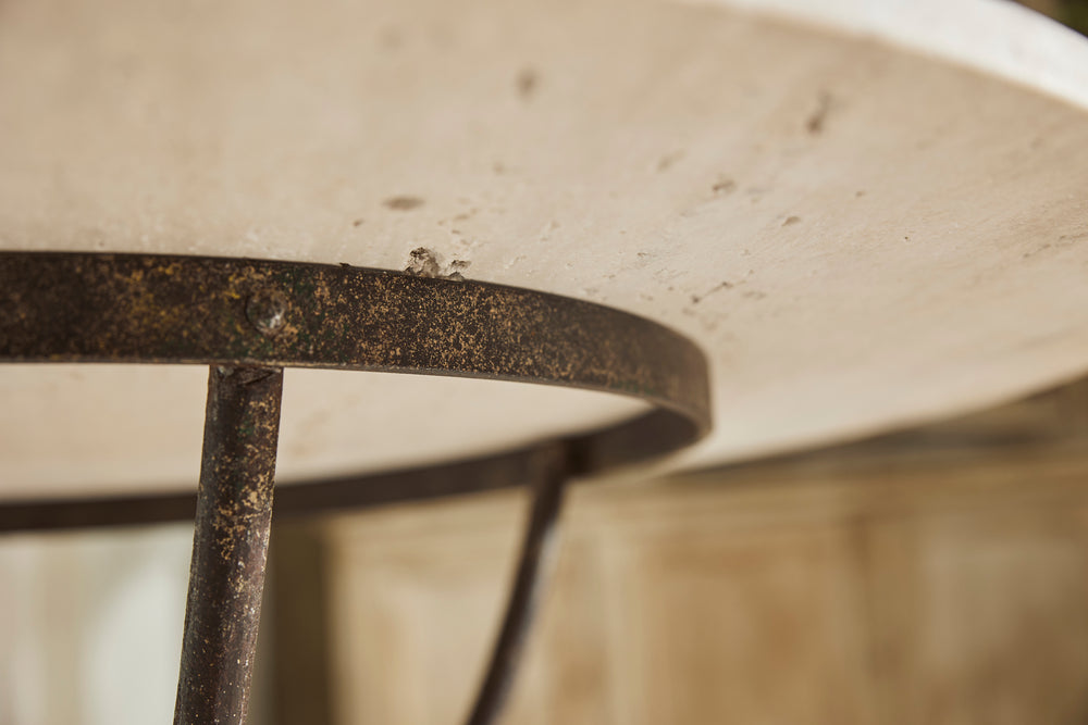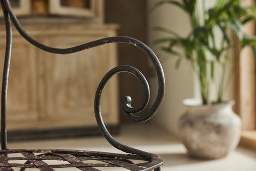 This exceptional mid-19th century dining set in original condition is a very rare find from the hilltop village of Menerbes in Provence. You can tell it was hand forged as the chairs are all very slightly different sizes with everything being either forged, clamped and riveted together. You can see traces of the original paint throughout both the table and chairs which we have now sealed to preserve the attractive patina and protect the set from the UK weather. The only new addition is the marble top. The original perished and has been replaced with a new piece exactly the same size as the old.The whole set is in very good condition and comfortably sits 4 either inside or out.