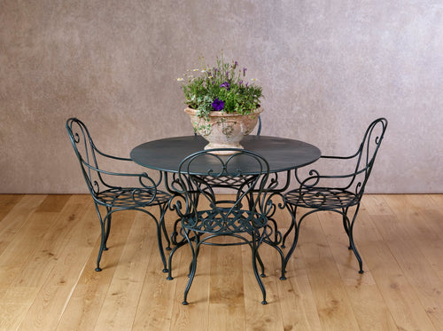 A very attractive Paris garden table and 4 very sturdy armchairs make up this 19th-century garden set.