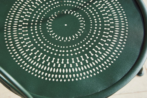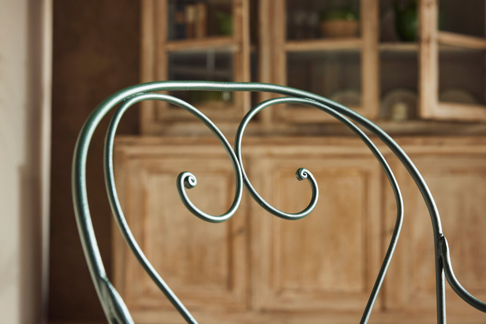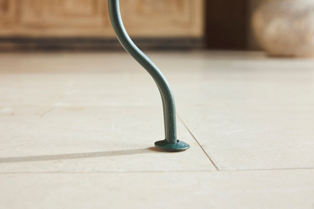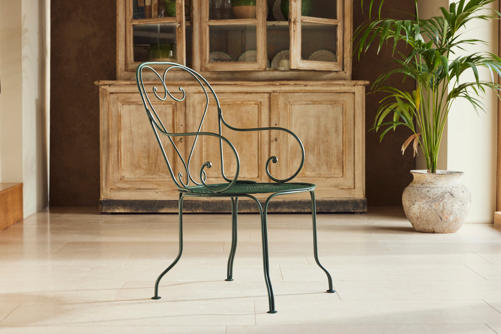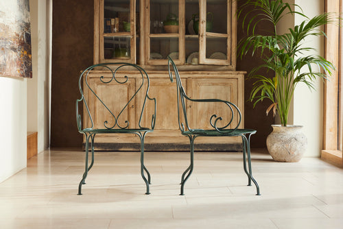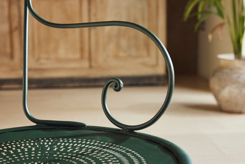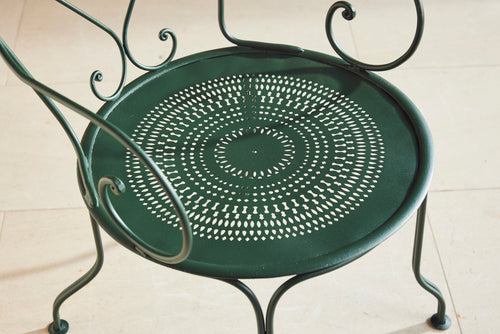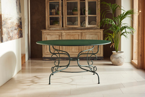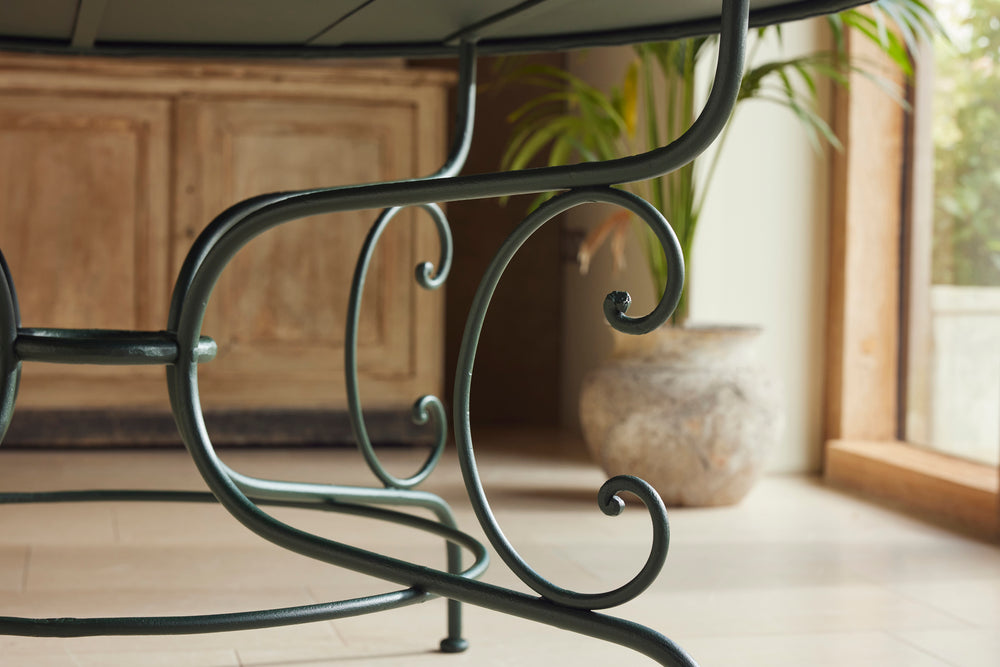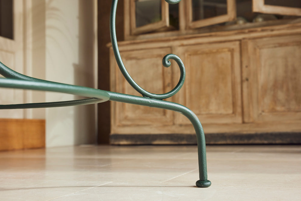 We love this highly sociable round Parisian garden table from the late 19th century. Interestingly the sheet metal top is in two halves and riveted together.