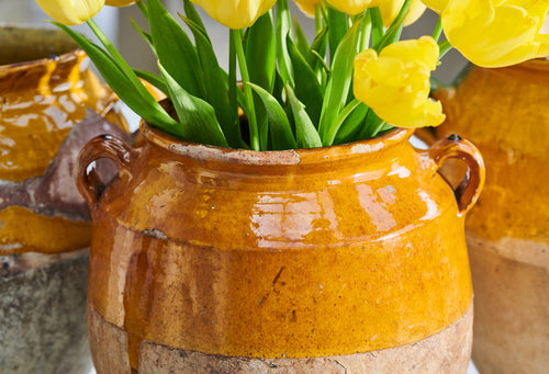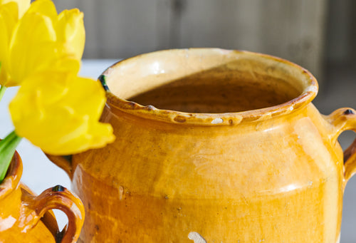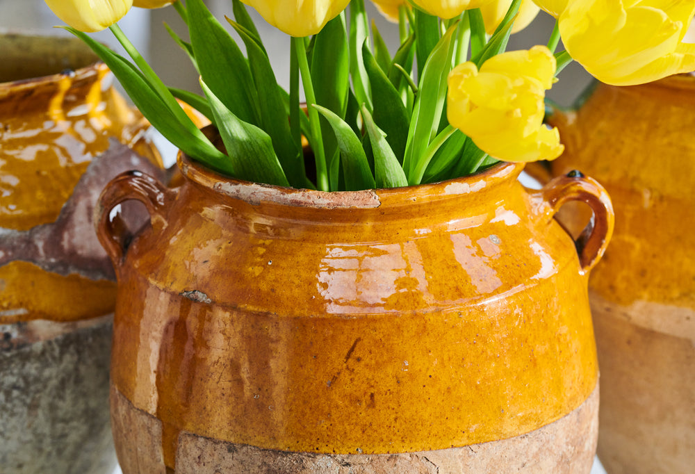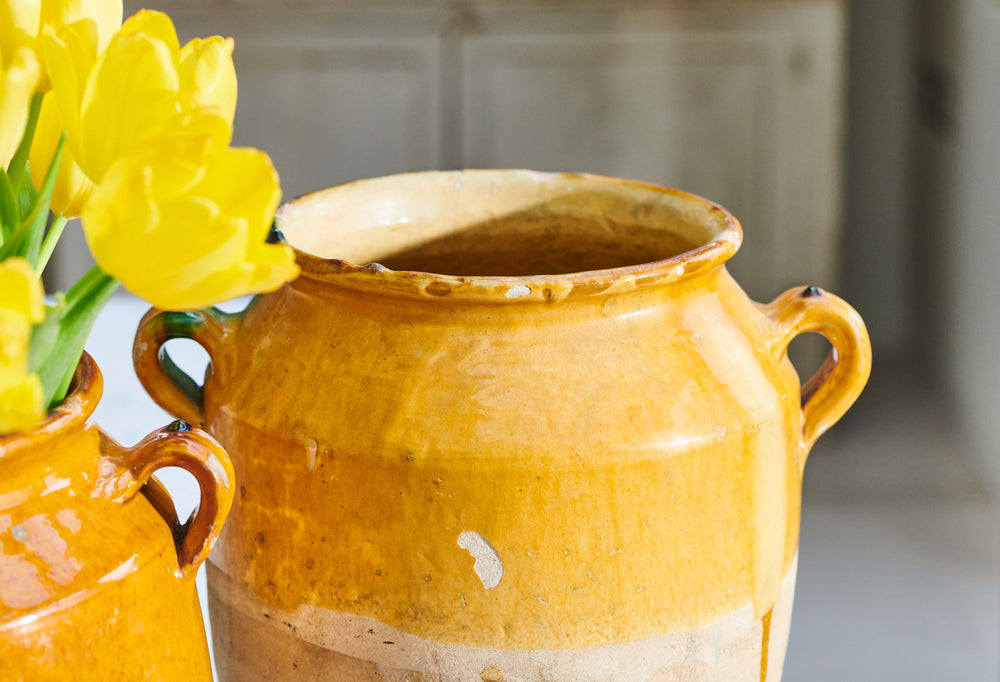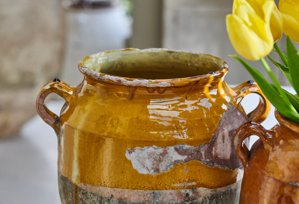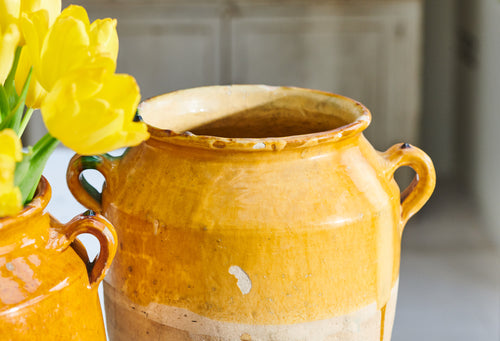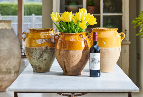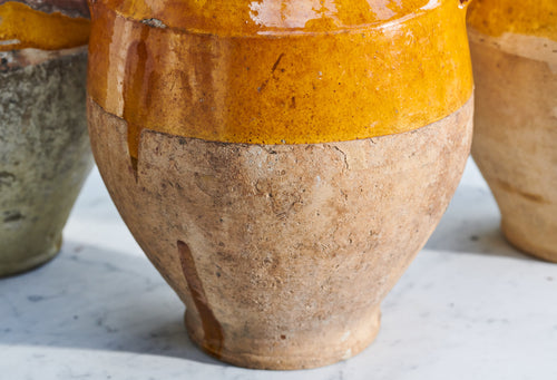 “Confit” is French for “preserve” and these neat little pots were used for preserving food over the winter. When sealed they would be stored in a cool larder and sometimes buried in the garden. These date from the 19th century and looks particularly good when grouped together.