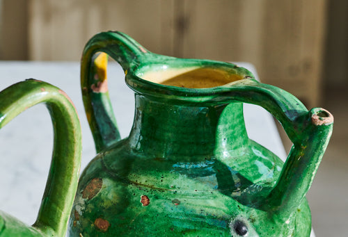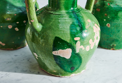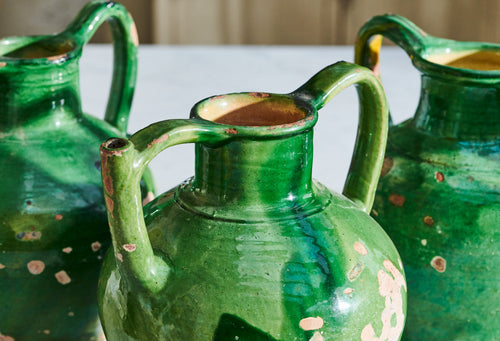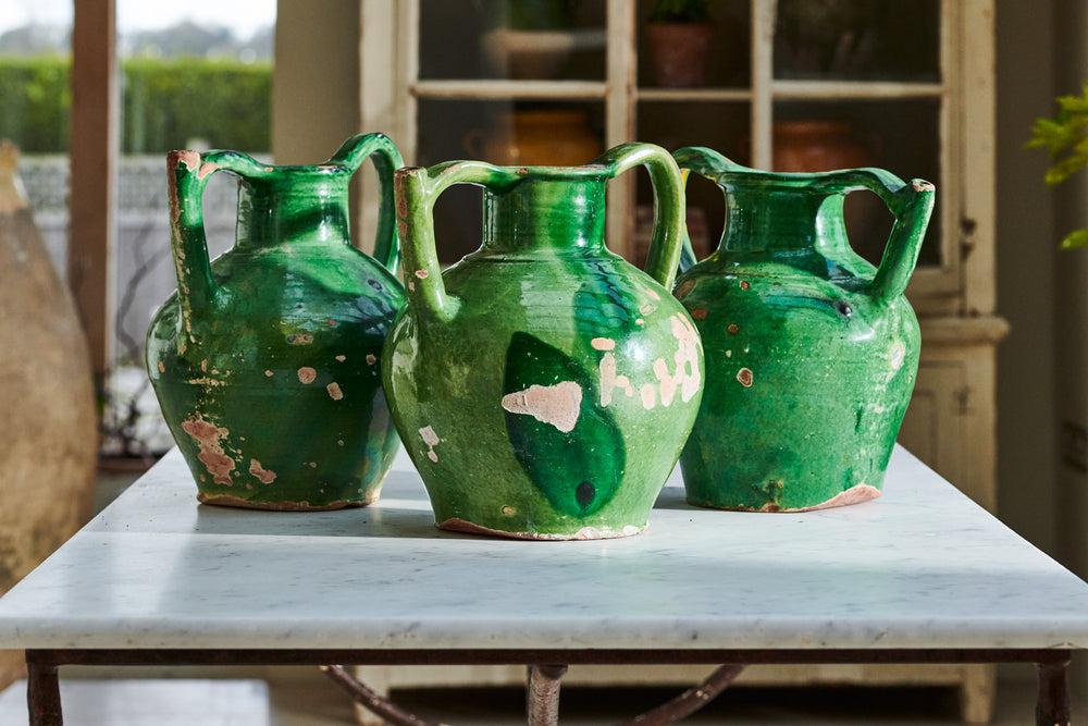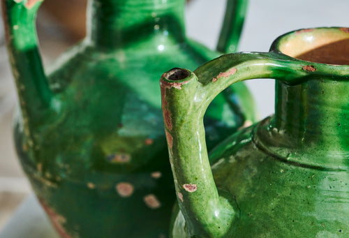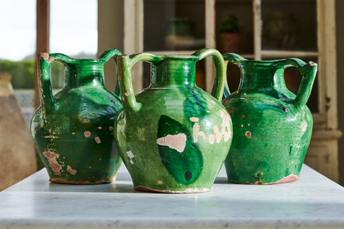 These lovely French 19th century Orjols are from the Languedoc region in South West France and were originally used as water jugs. With their beautiful green glaze, they now make very attractive ornaments for the home