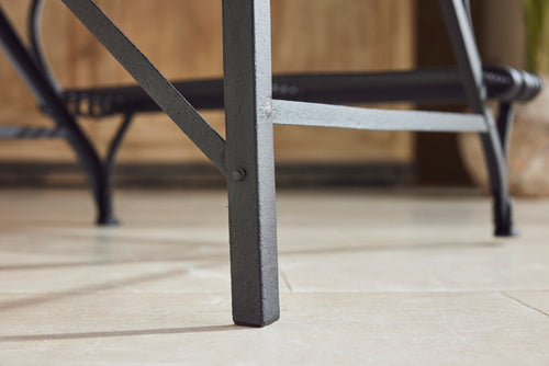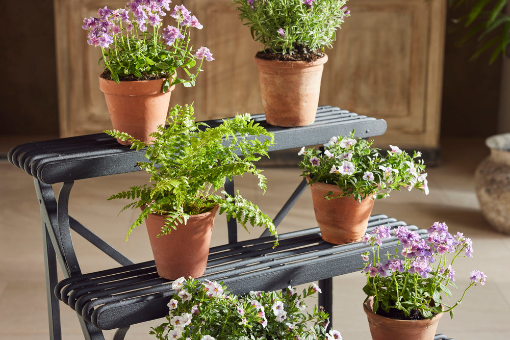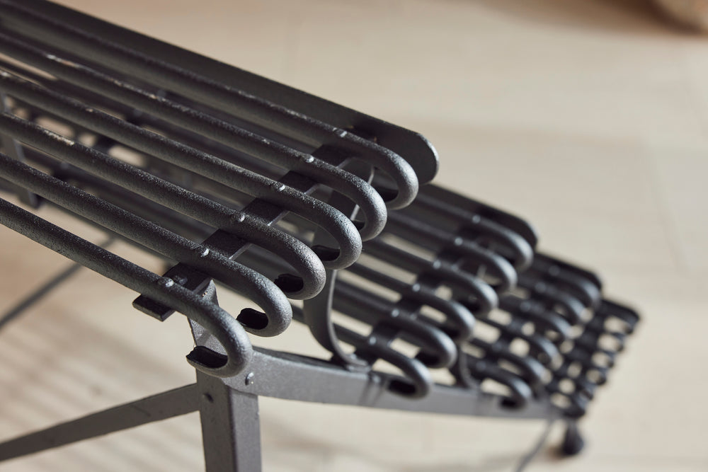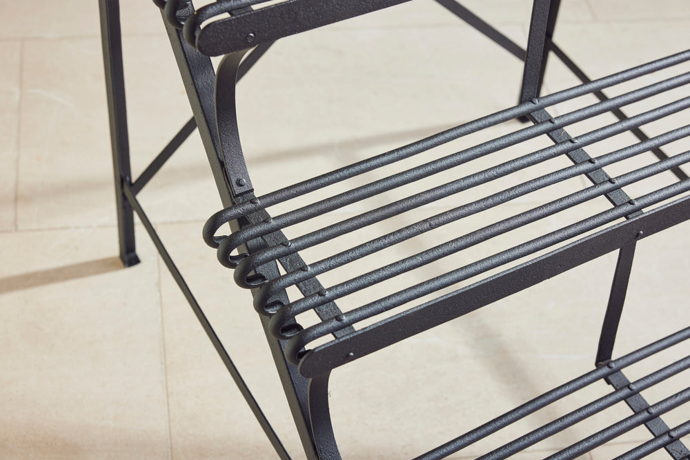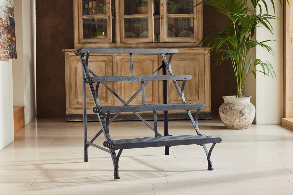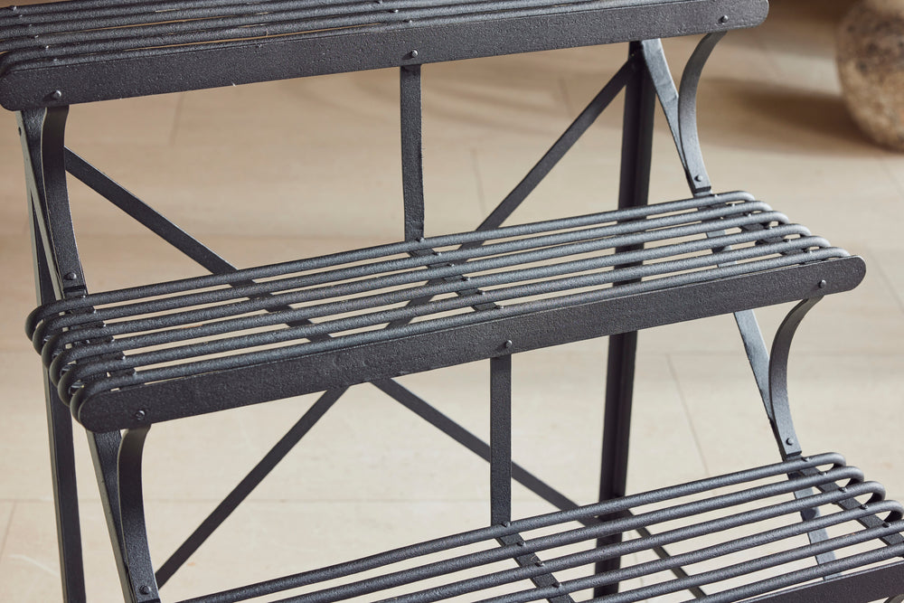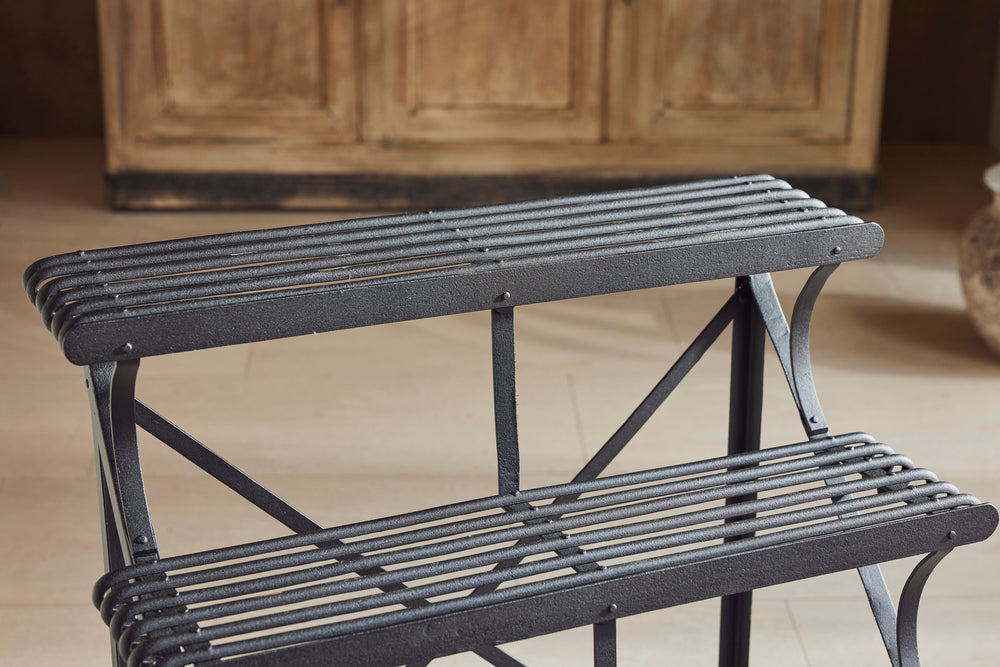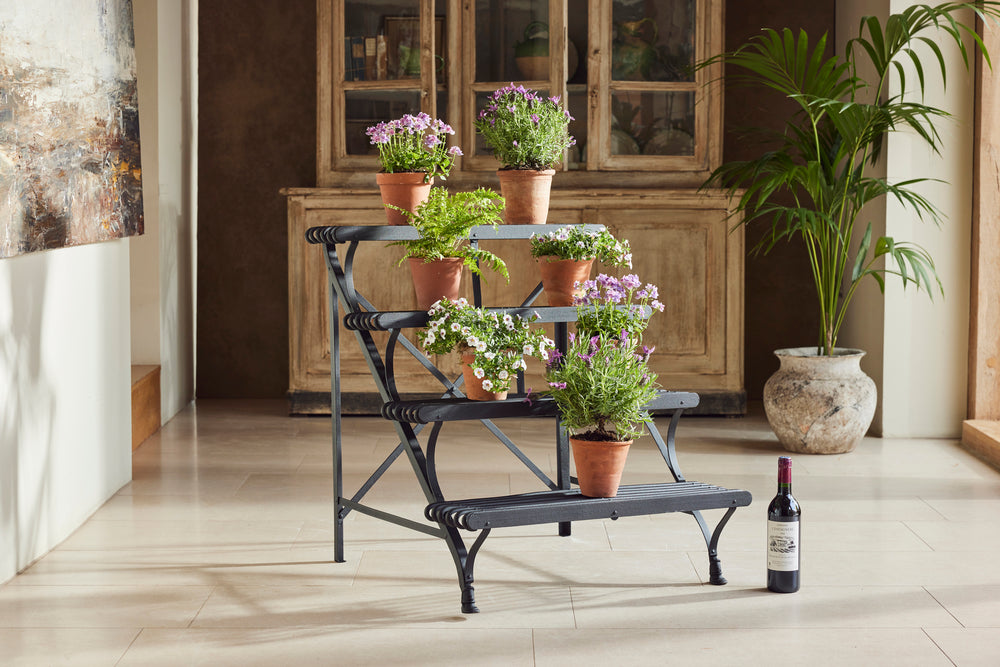 A lovely Arras plant stand from manufacturer Grassin Baledans. The term "Arras" refers to garden items produced in the French town between 1840 and 1914 from patented half-round hollow steel tubing. This edition with hoof feet dates from the turn of the 19th century and would have been used in an orangery or conservatory to create a fantastic floral display.