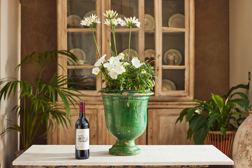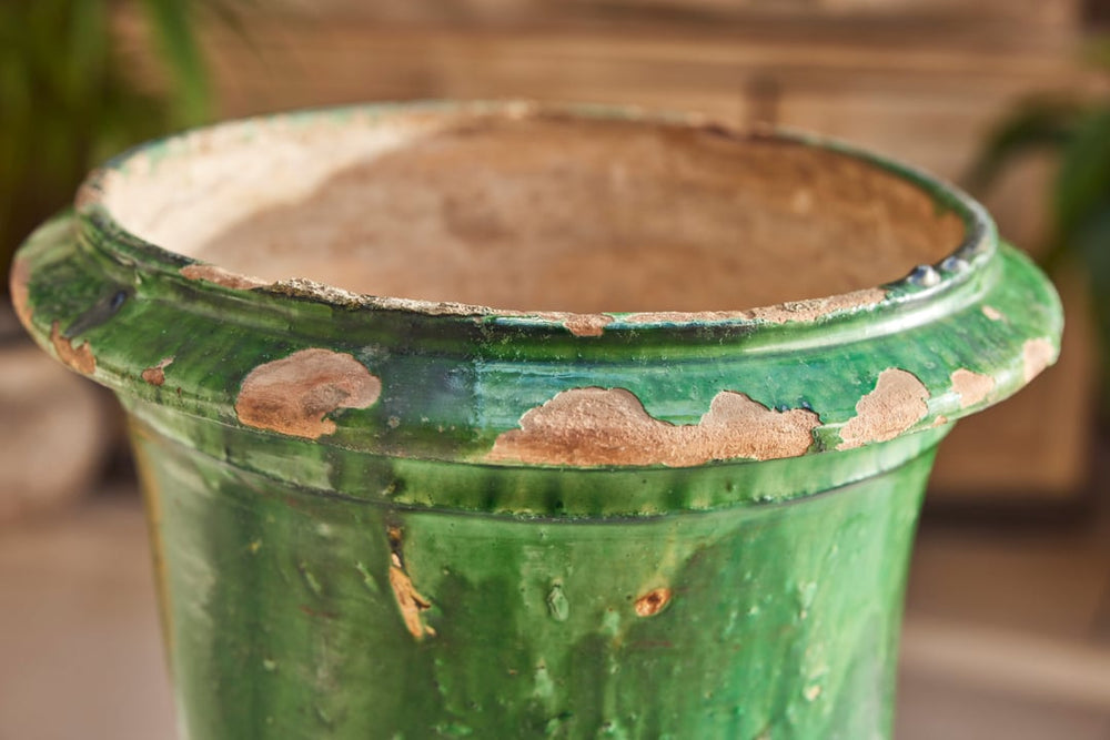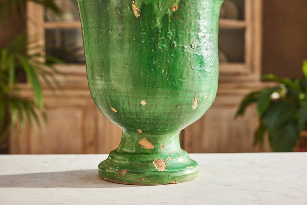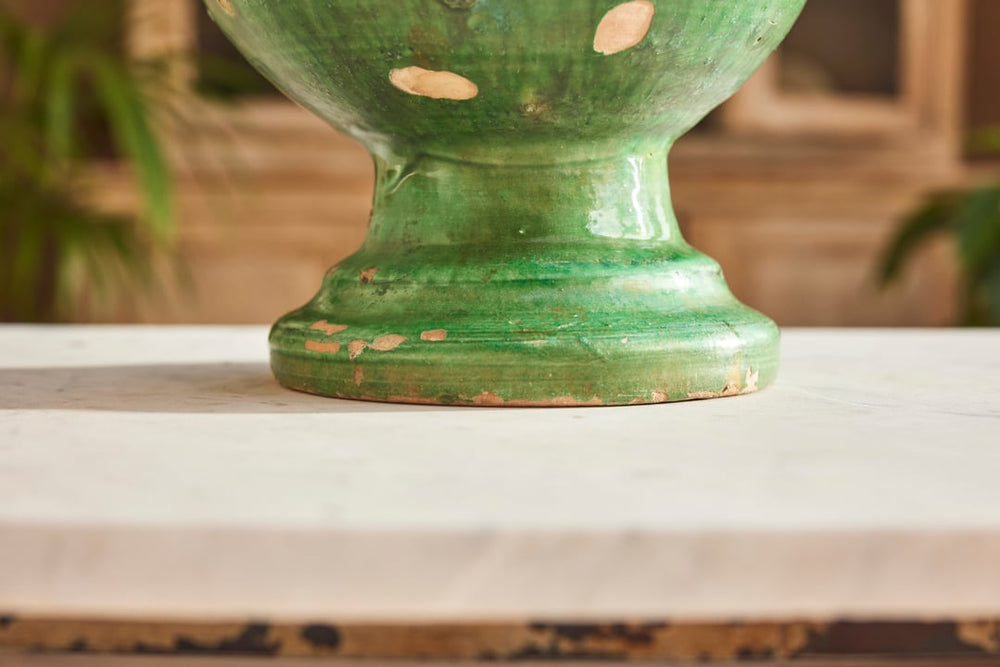 Its elegant form and surface wear, including minor chips, reflect its age and authentic character. A distinctive piece—ideal for flowers, houseplants, or as a tasteful decorative accent.
