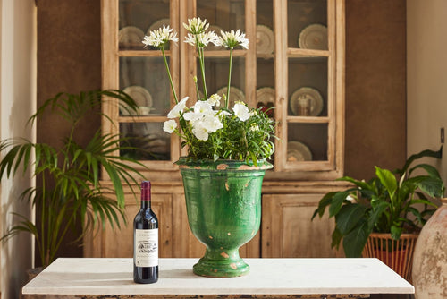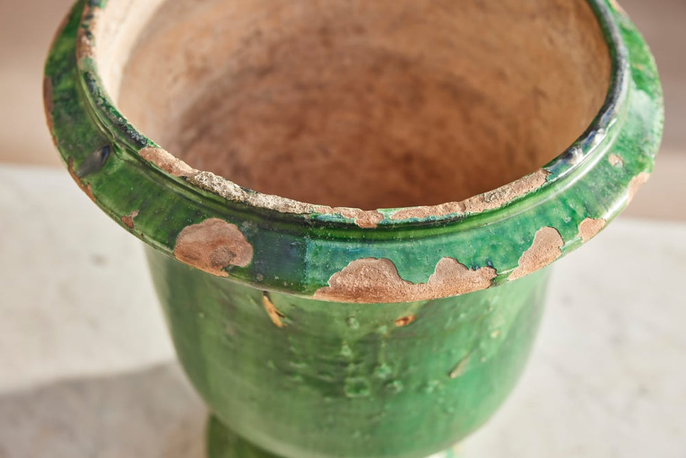 From the renowned pottery region of Anduze in southern France, this small vase was handmade in the early 20th century and features the classic green glaze typical of the area.