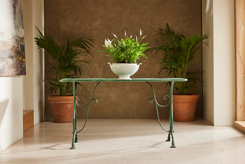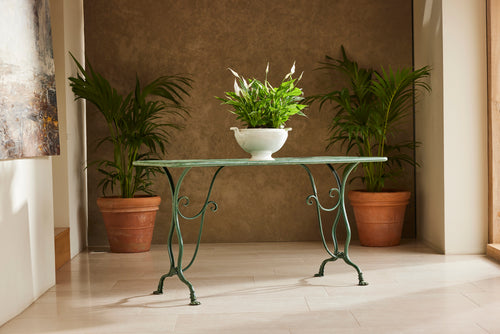 A rare Arras Carre Longue Table. The vast majority of Carre Longue tables that come to market are around 80cm long. At 131cm long, this one is particularly unusual. The length emphasises the sleek design, which would be a feature in any home. We removed all the loose and flaking paint and sealed it to preserve the patina. It features the maker's plaque on each end of the frame, and the lion claw feet are typical of Arras furniture from the 19th century.