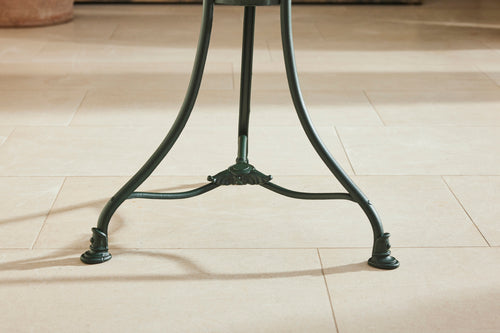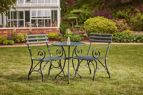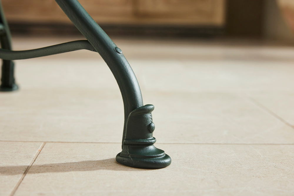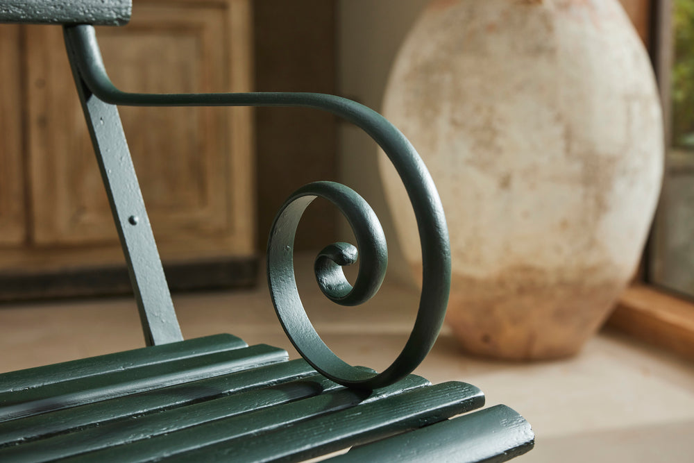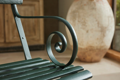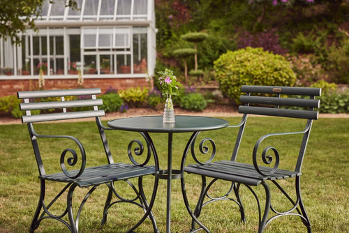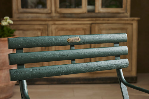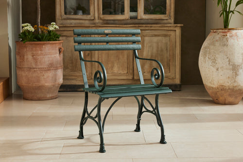 This original Arras dining set features two armchairs with hardwood seats and backs, along with a bistro table, all showcasing the distinctive hoof feet synonymous with early 20th-century designs from the renowned Grassin Baledans foundry (1864–1914). Perfect on the patio or as a focal point in the garden.
