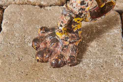 A very attractive Arras table which has developed a wonderful painted patina with contrasting colours from decades of overpainting. The classic lions claw feet date the table to around 1870. It is in excellent condition and although originally designed for the garden would look great as a contrast to soft furnishings inside the home.