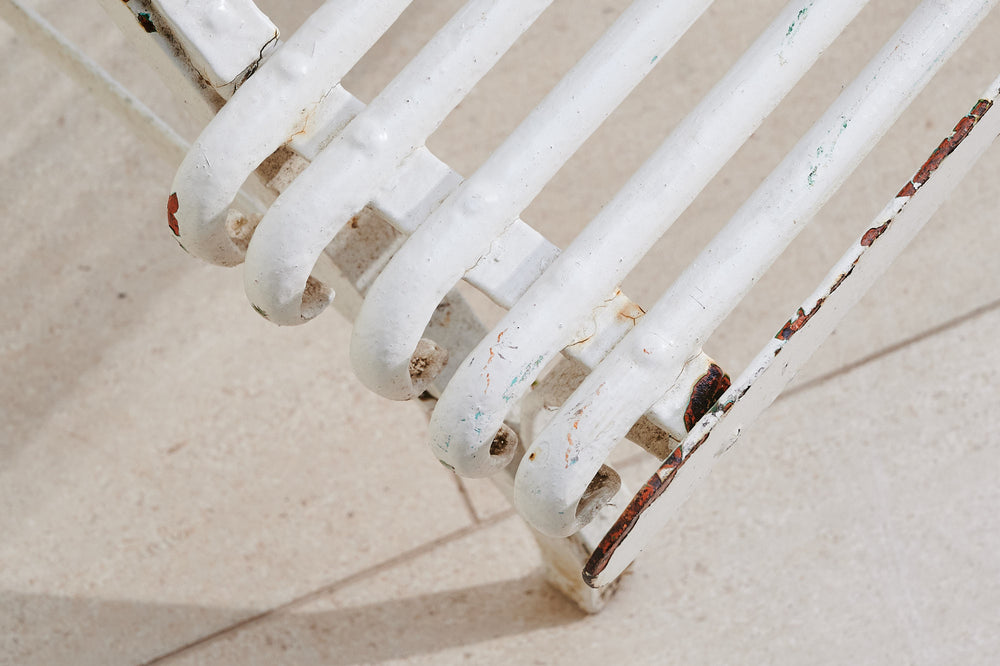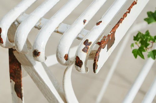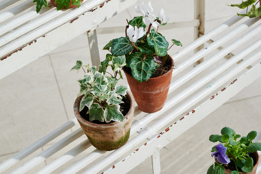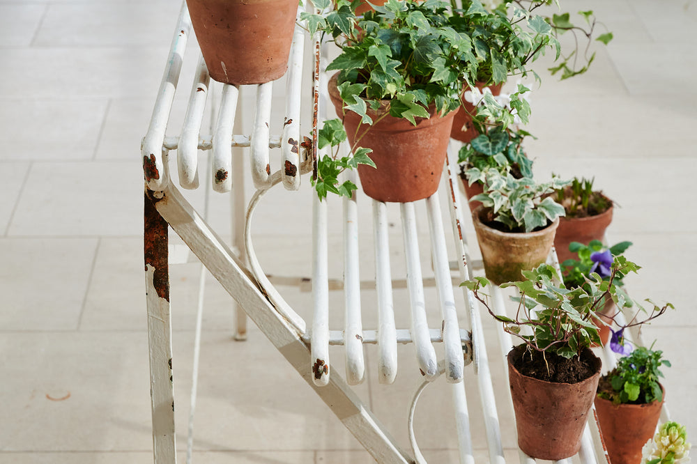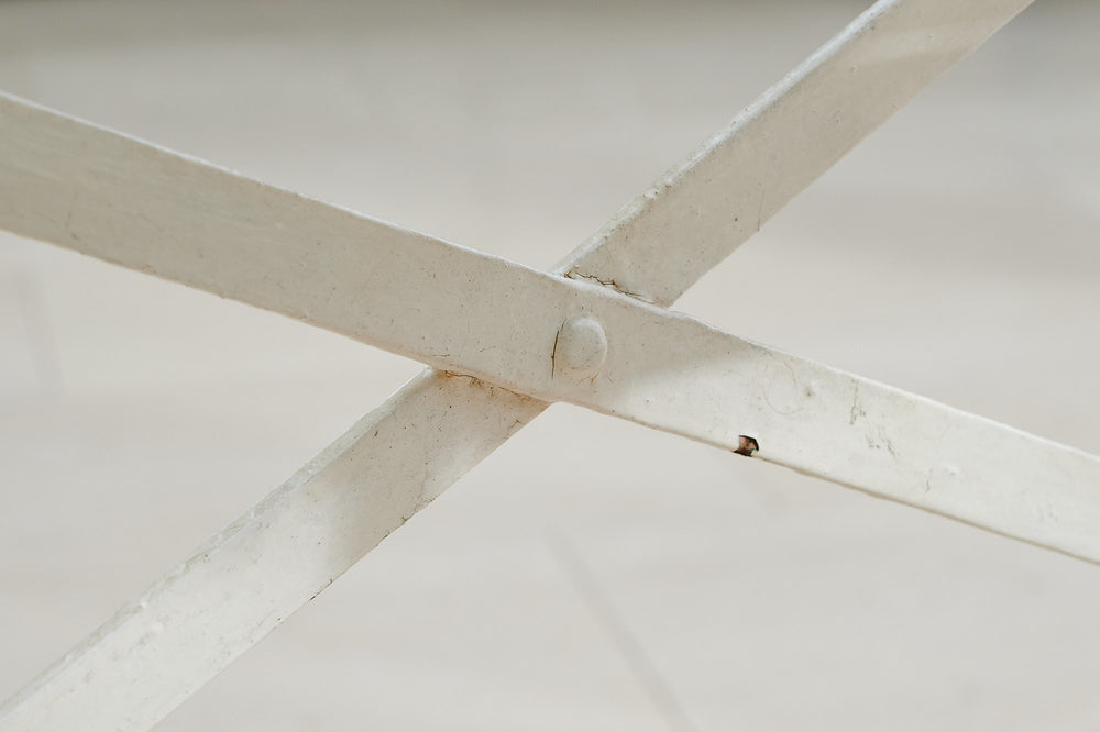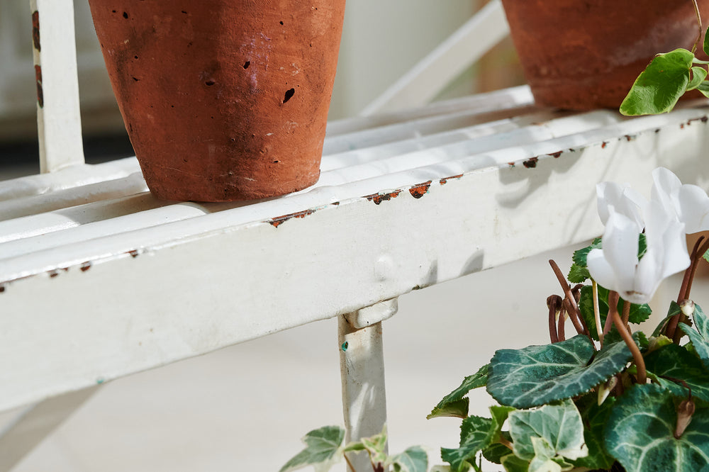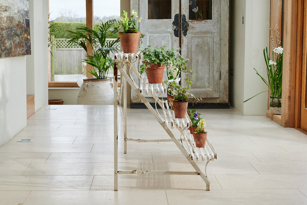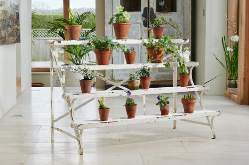 An Arras plant stand. The term "Arras" refers to garden items produced in the French town by the company Grassin Baledans between 1840 and 1914 from patented half-round hollow steel tubing. This turn of the century version was featured in the manufacturer's 1874 catalogue and probably used by a plantsman in a greenhouse.
