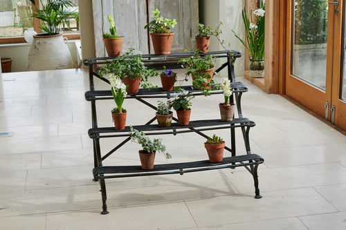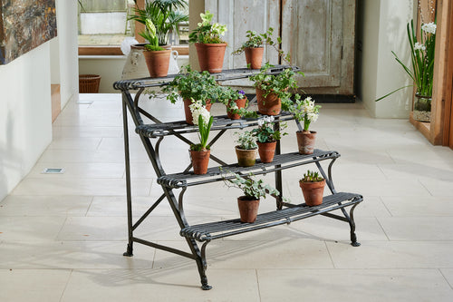 A lovely Arras plant stand from manufacturer Grassin Baledans. The term "Arras" refers to garden items produced in the French town between 1840 and 1914 from patented half-round hollow steel tubing. This edition was originally featured in the manufacturer's 1874 catalogue and would have been used in an orangery or conservatory to create a fantastic floral display.