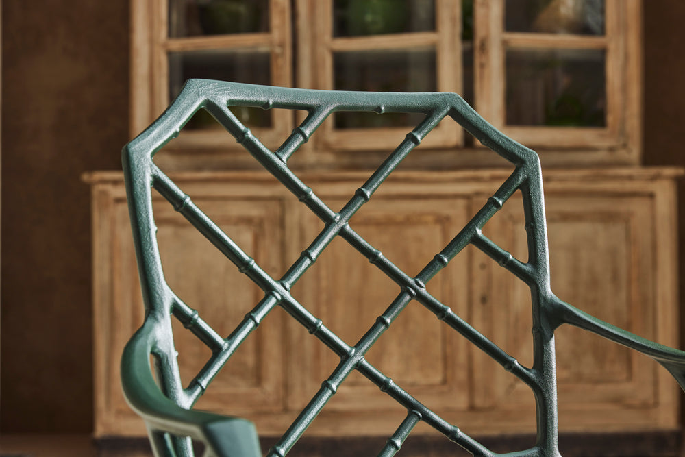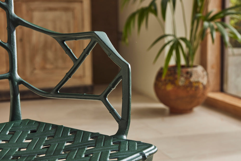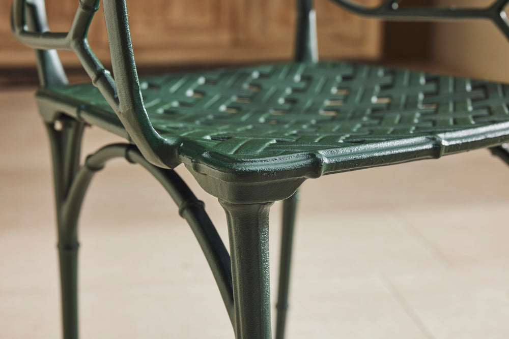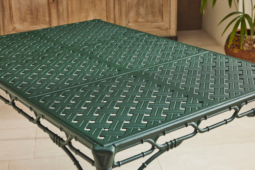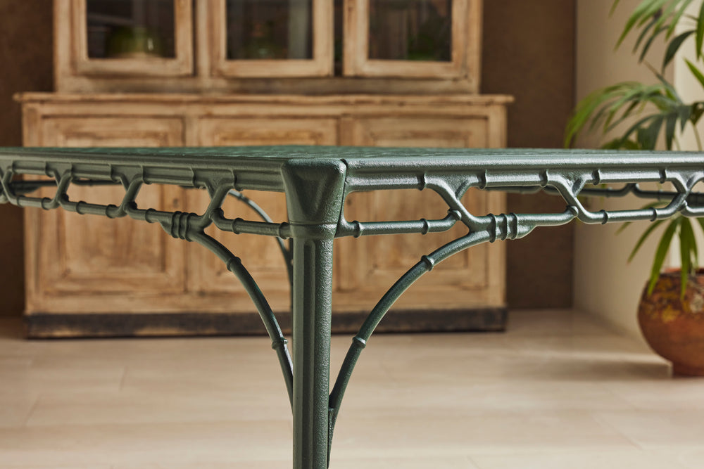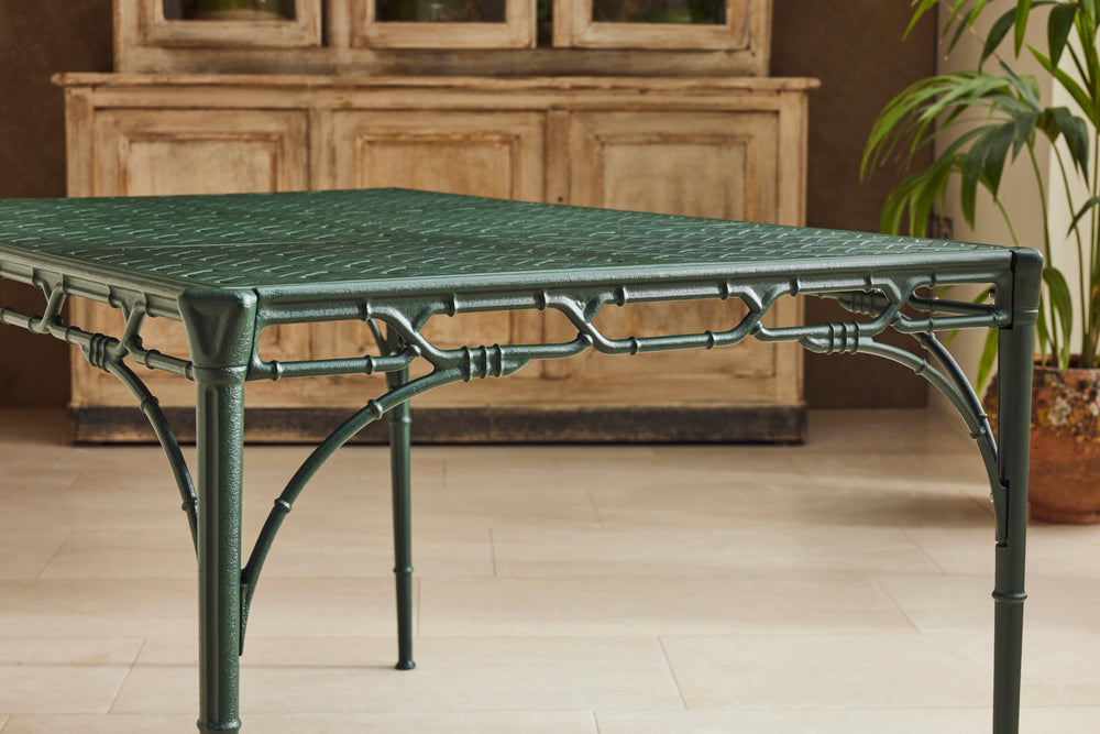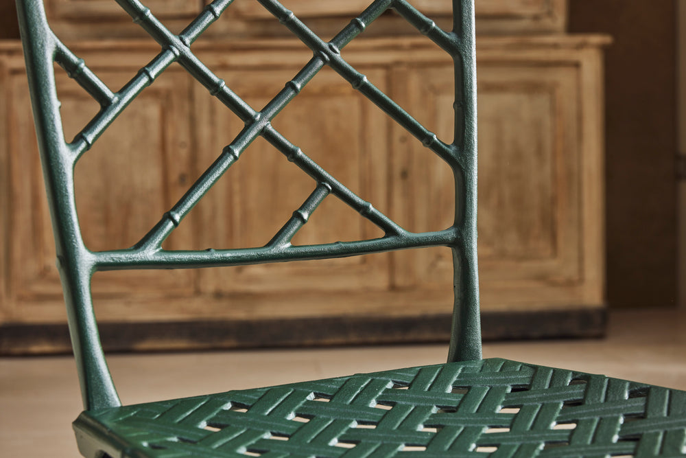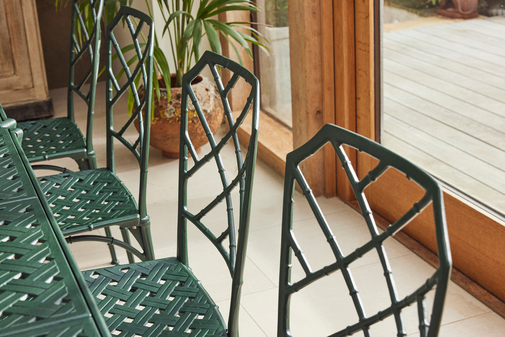 We bought this lovely faux bamboo garden dining set from auction in the UK because of the quality and weight of the casting which you don't find in modern aluminium furniture today.