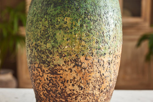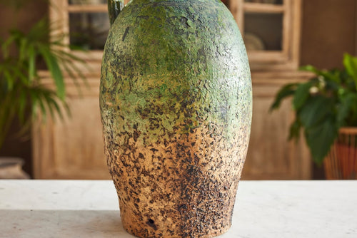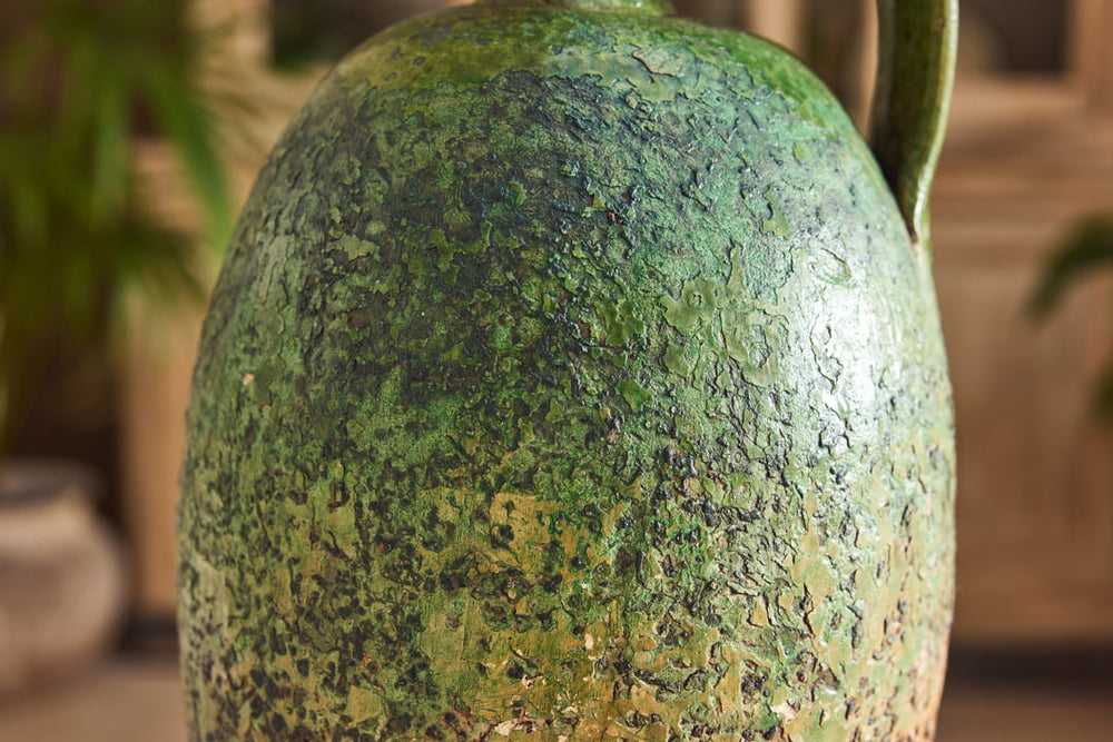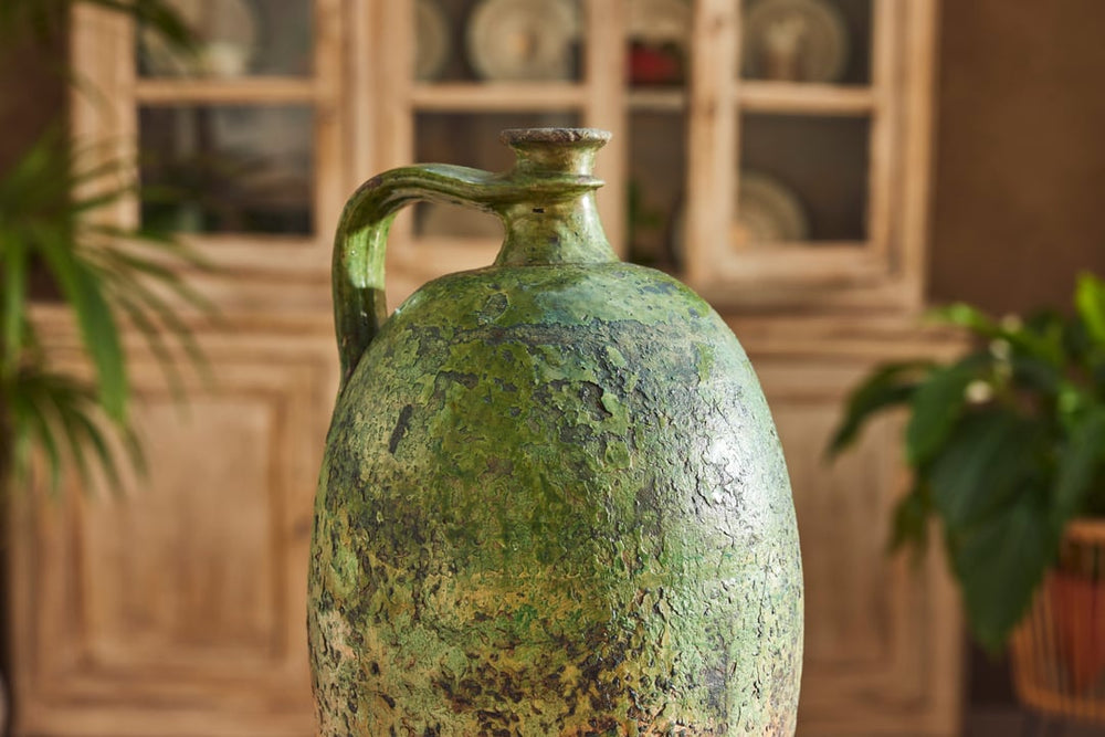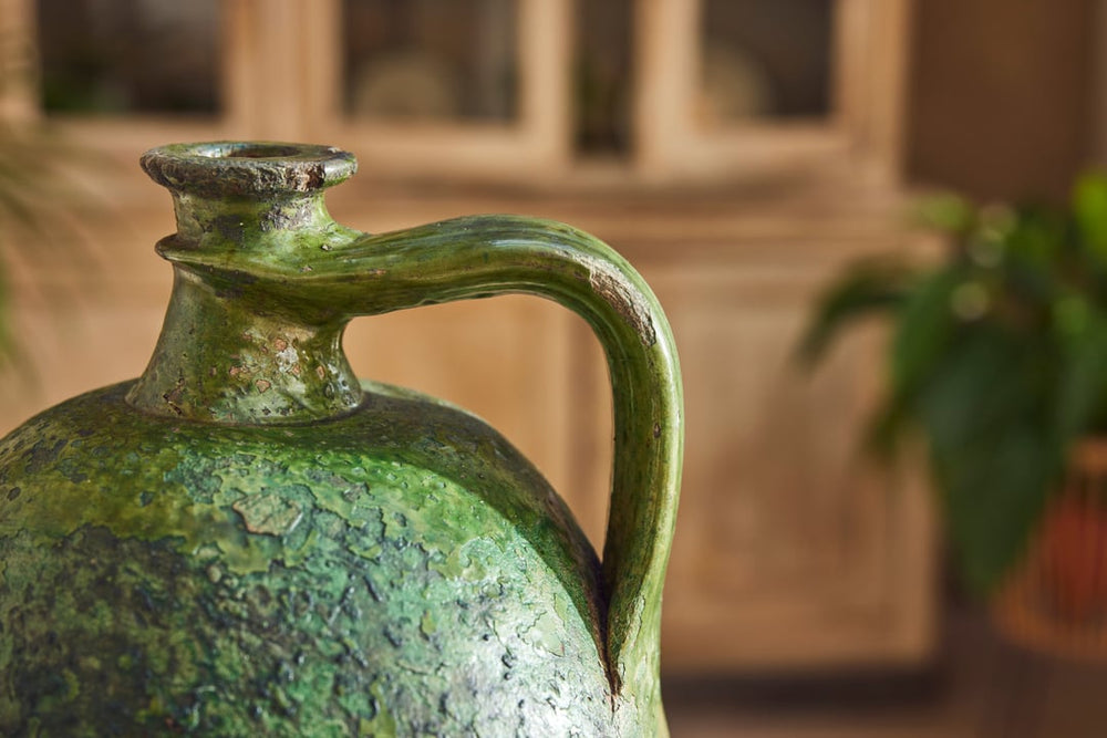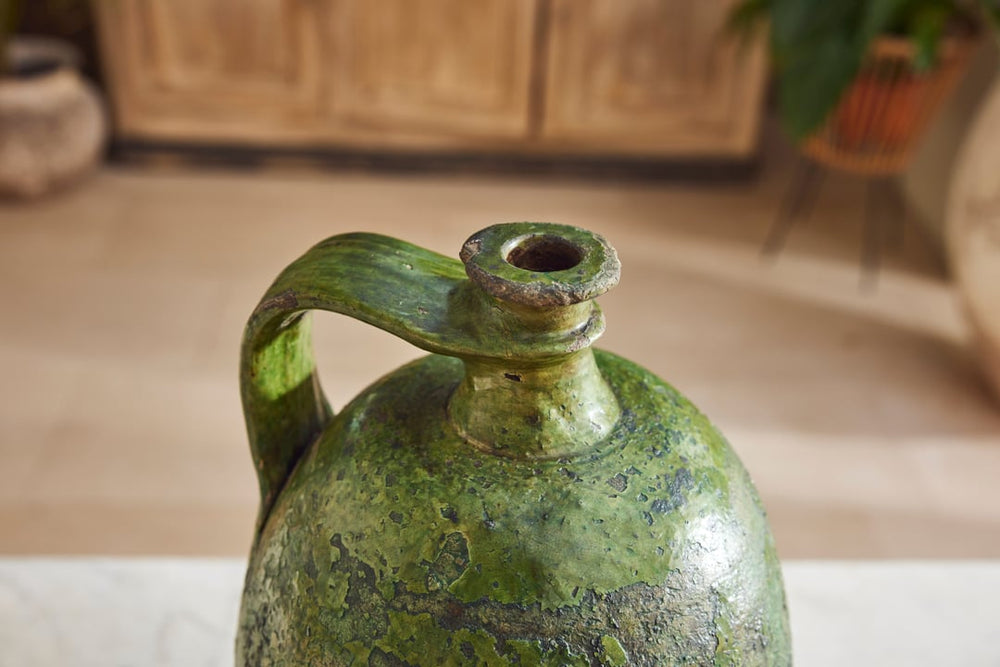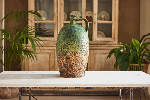 Decades of weathering have created a unique surface of mottled brown and green tones that catch the light beautifully, giving the jug extraordinary depth and character. It’s the kind of natural ageing that simply can’t be replicated.