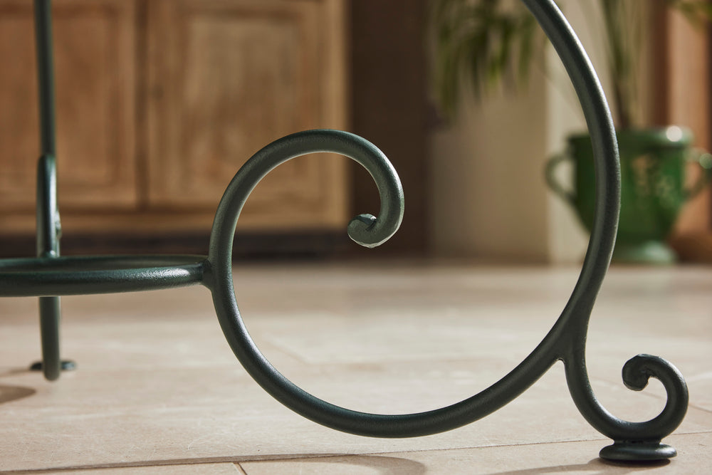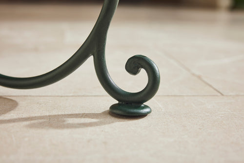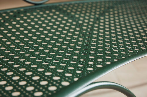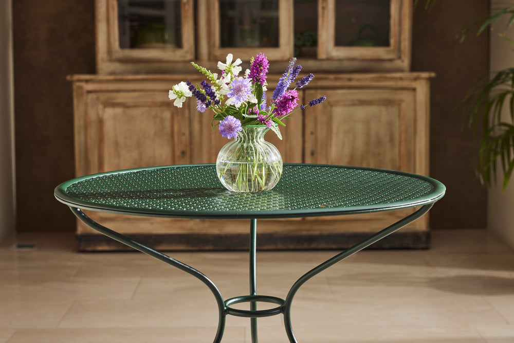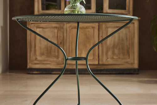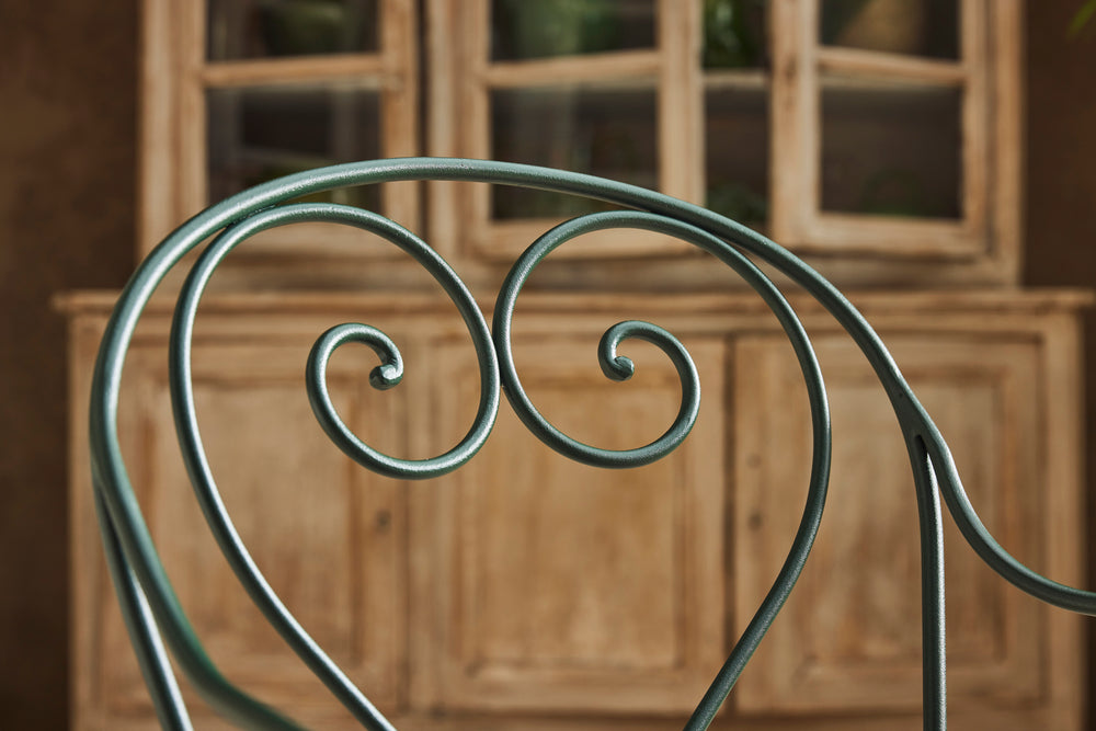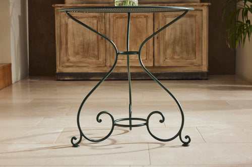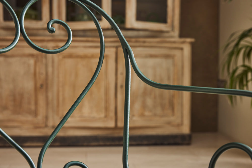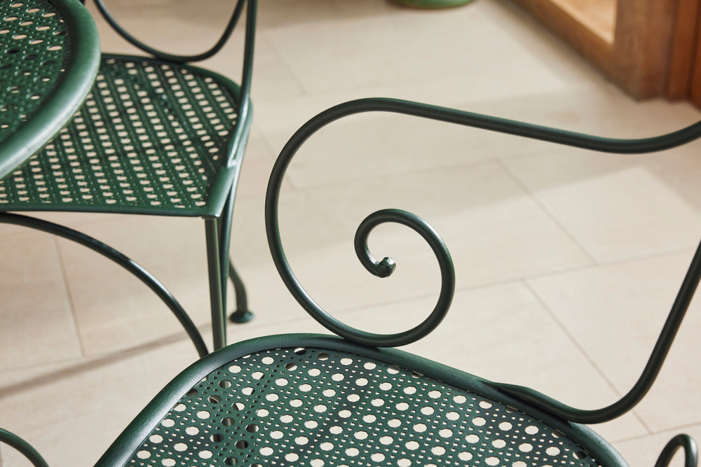 this 1920s garden set in the lovely town of St Remy de Provence in the South of France. Unusually the set consists of a 2-3 seater bench, two armchairs and a dining table. Made from hand forged wrought iron with faux bamboo mesh seats and a matching table top this set has been fully restored by us and is therefore in very good condition. It would be perfect for alfresco dining or in the garden room.