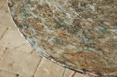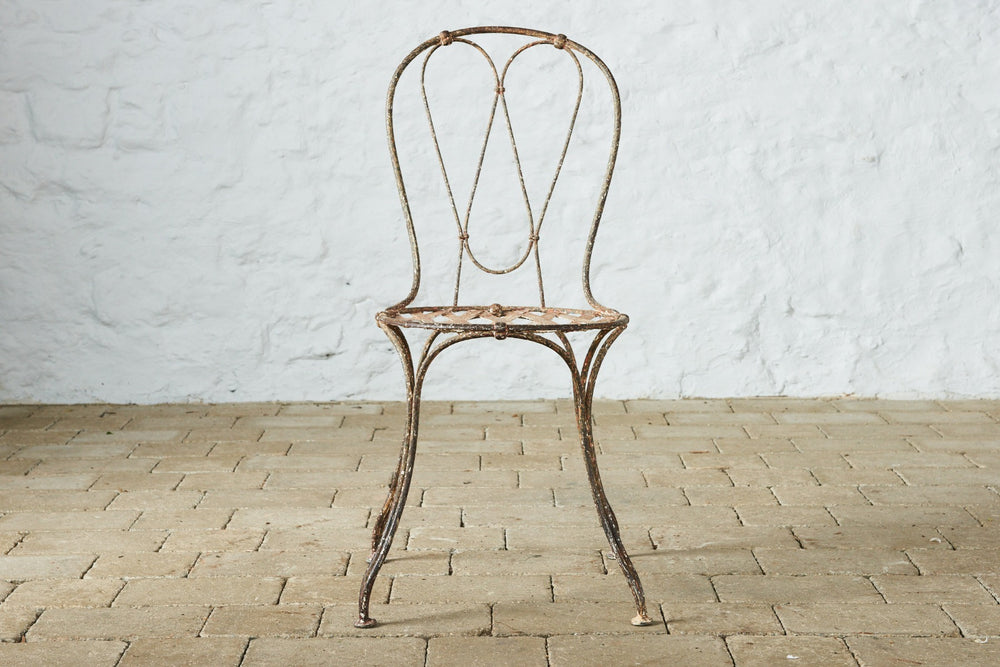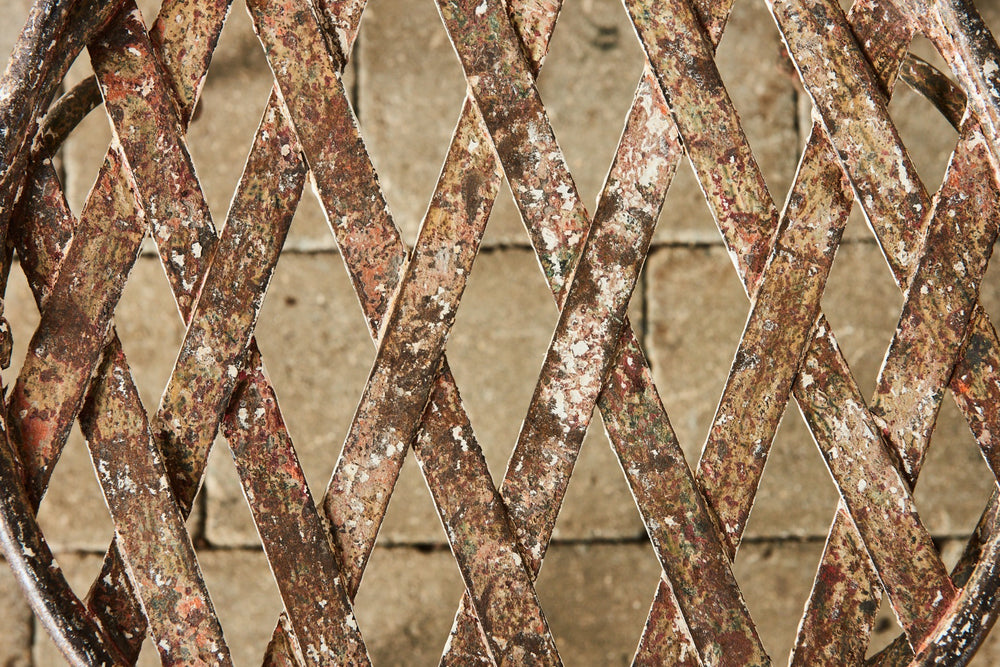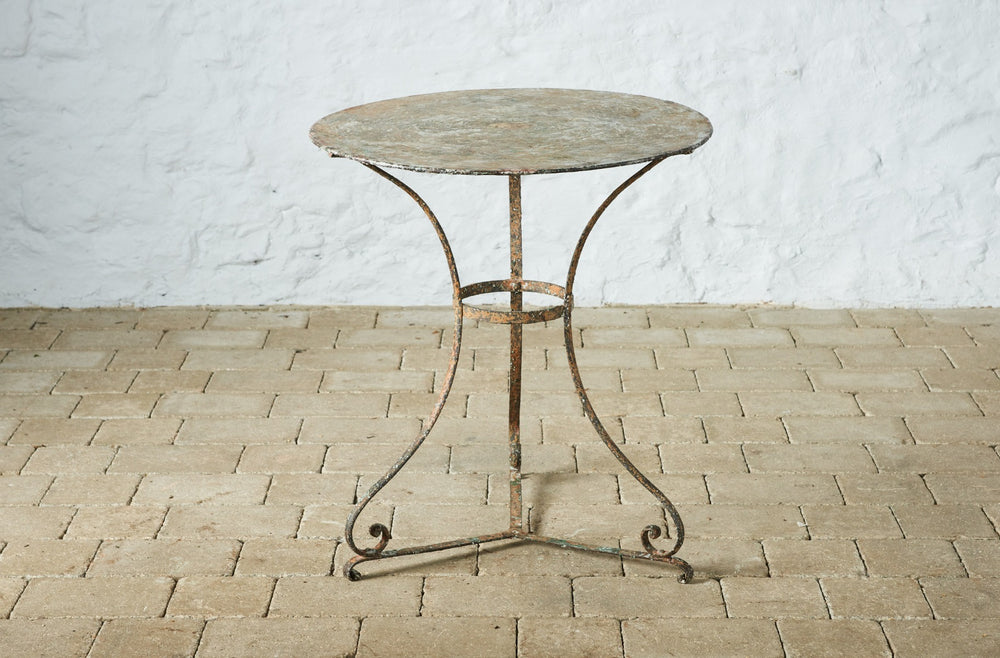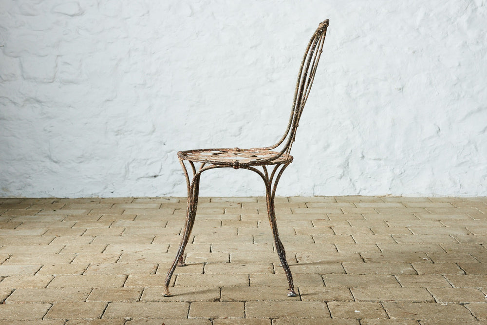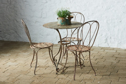 A very fine garden set consisting of a table and 3 chairs. This set has over the years developed a fantastic , consistent, weathered patina and could continue to be used in the garden but would look equally as good as a feature set in the home.