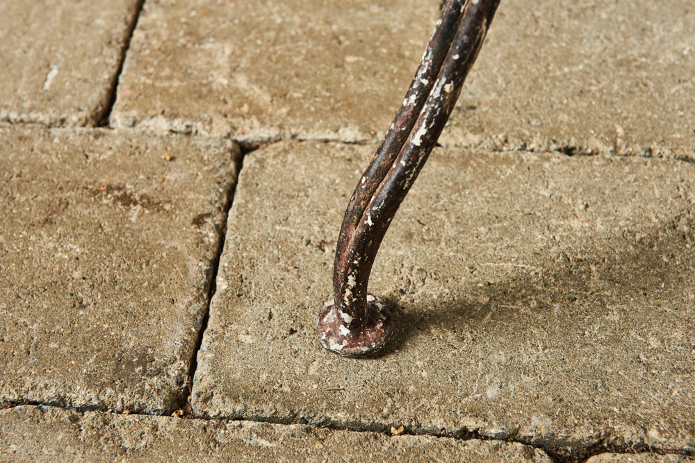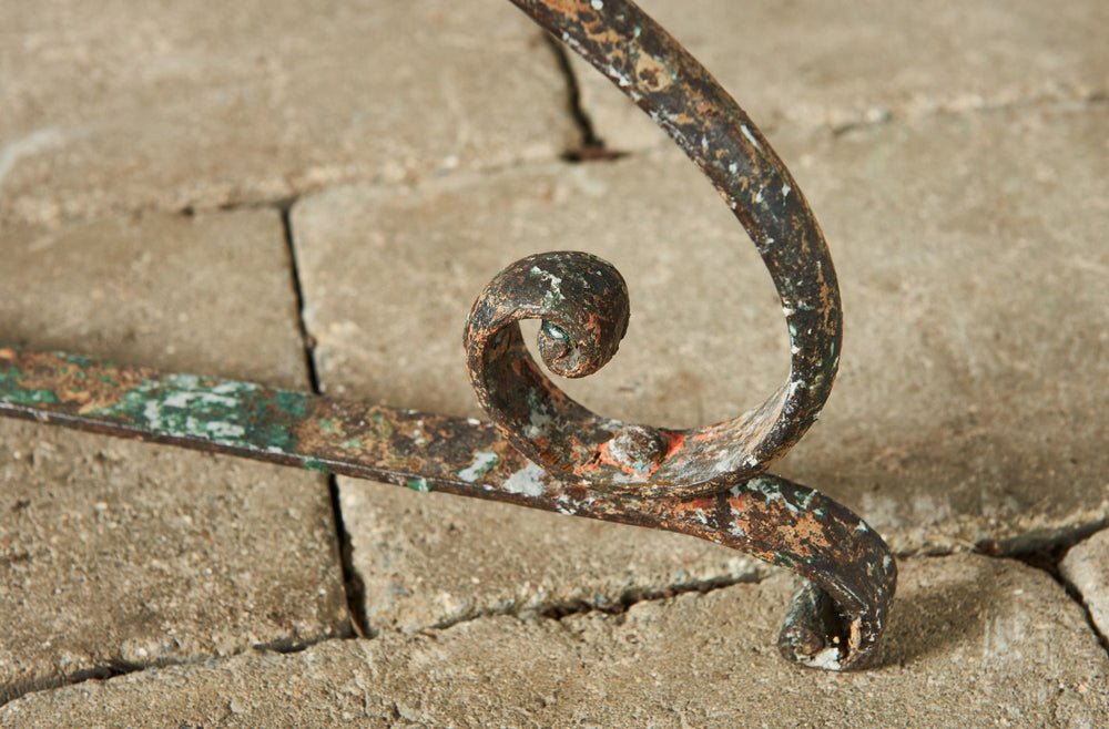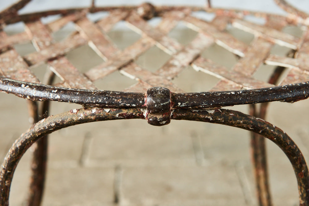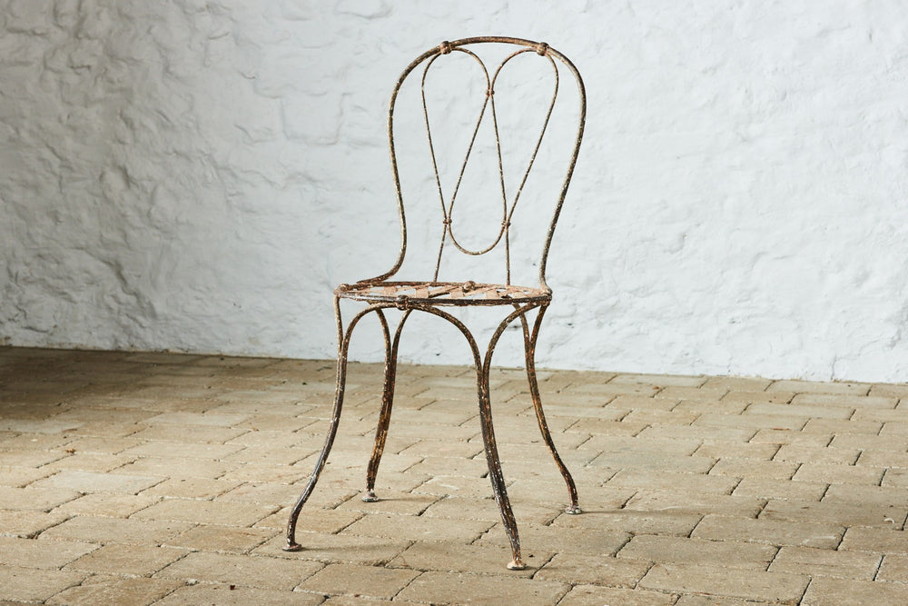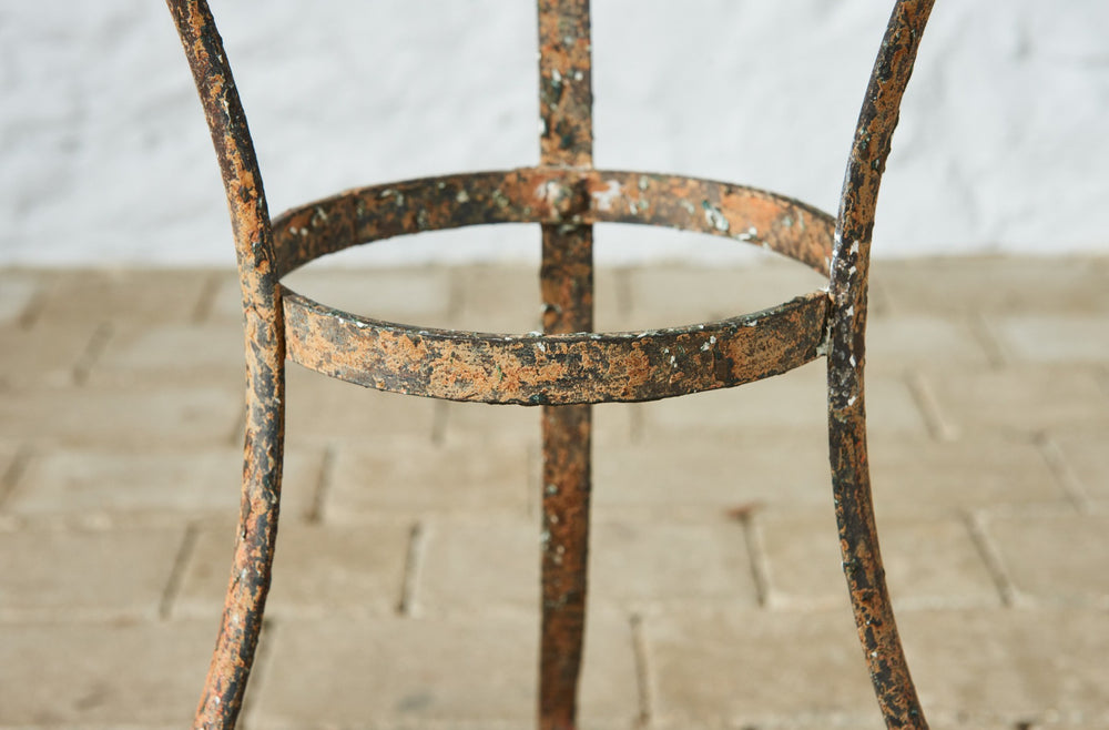 A very fine garden set consisting of a table and 3 chairs. This set has over the years developed a fantastic , consistent, weathered patina and could continue to be used in the garden but would look equally as good as a feature set in the home.