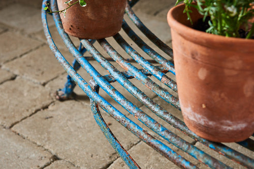 A rare Arras Plant Stand with six curved tiers in an attractive blue finish. The stand has lions claw feet meaning that it was made in the late 19th century for a garden room or conservatory rather than for the greenhouse. A lovely tall piece which would form the basis of a fabulous plant display.