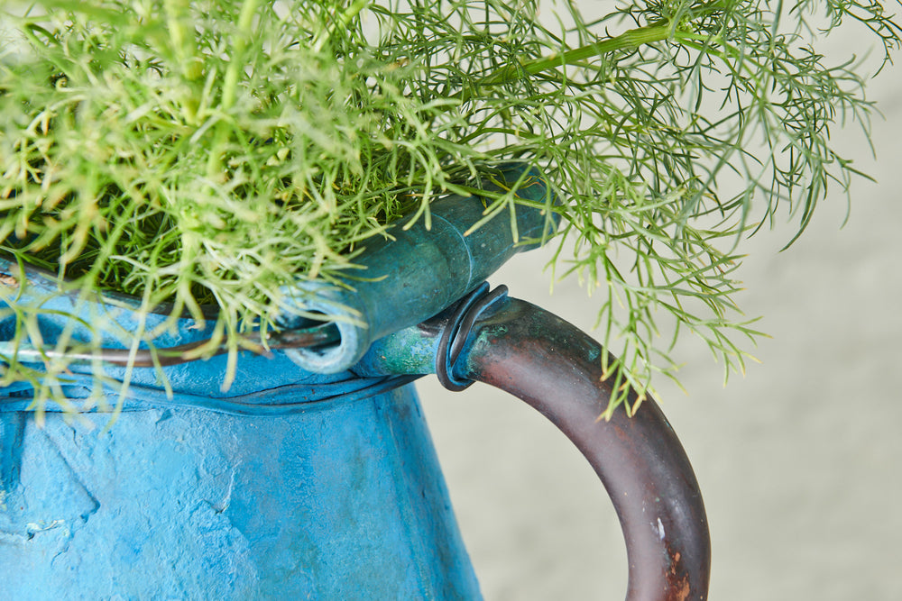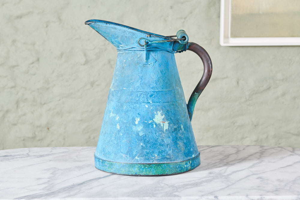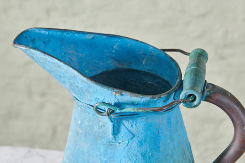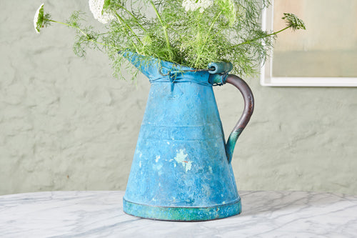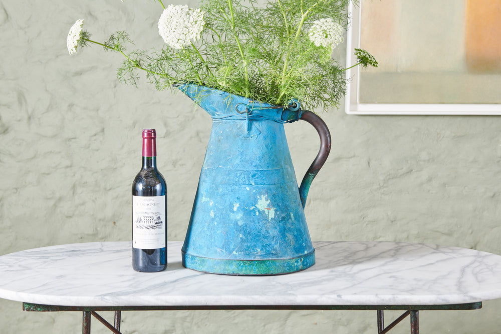 Thus huge blue jug has such character. Found in Provence it is the same colour as the sky in the South of France. It is necessary to put a water vessel inside the jug should you wish to display flowers. When filled it makes a fabulous display both inside and out.