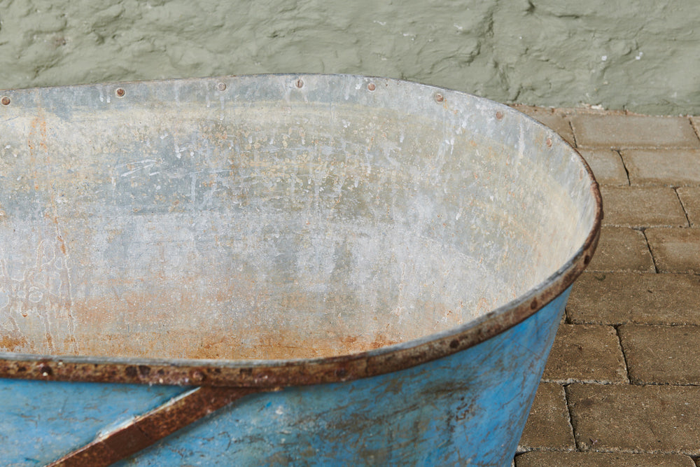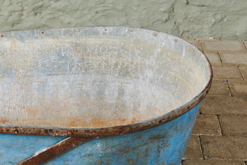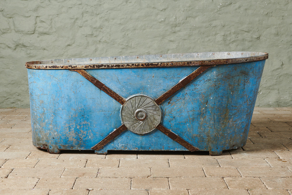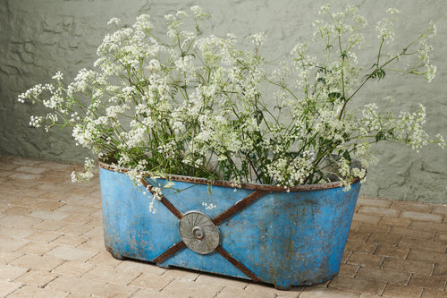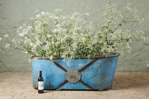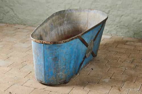 Finding zinc baths for planters is one of my favourite things to buy! This one is a beauty in a gorgeous blue with a criss-cross metal band and zinc plate in the middle. When filled with seasonal planting it really comes to life.