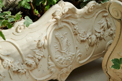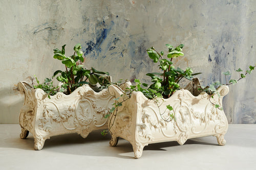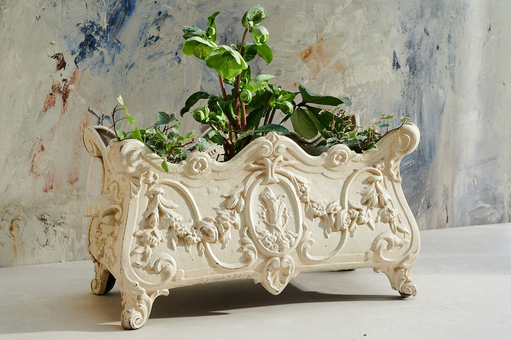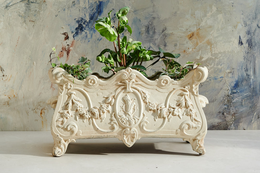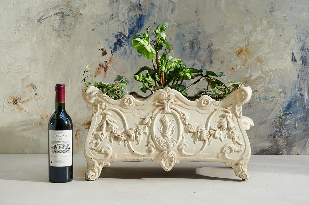 An attractive pair of cast iron jardinieres from the South of France. They could be used inside or out and are deep enough for both seasonal planting and house plants.