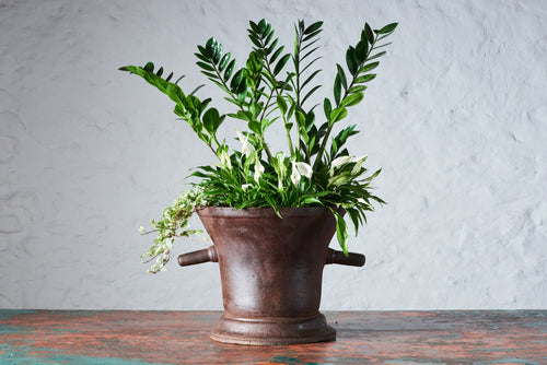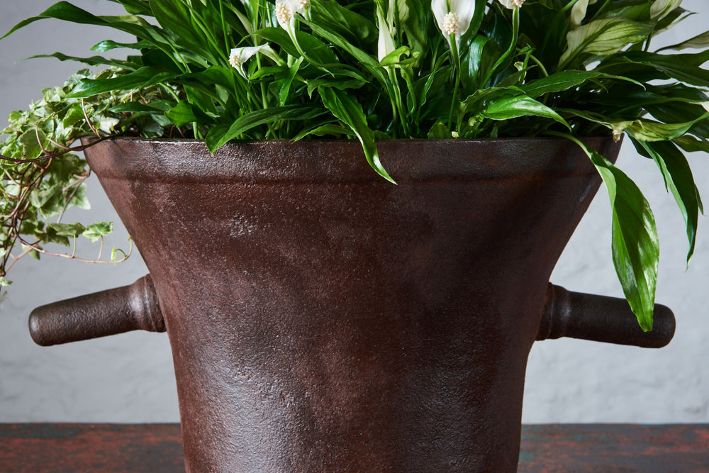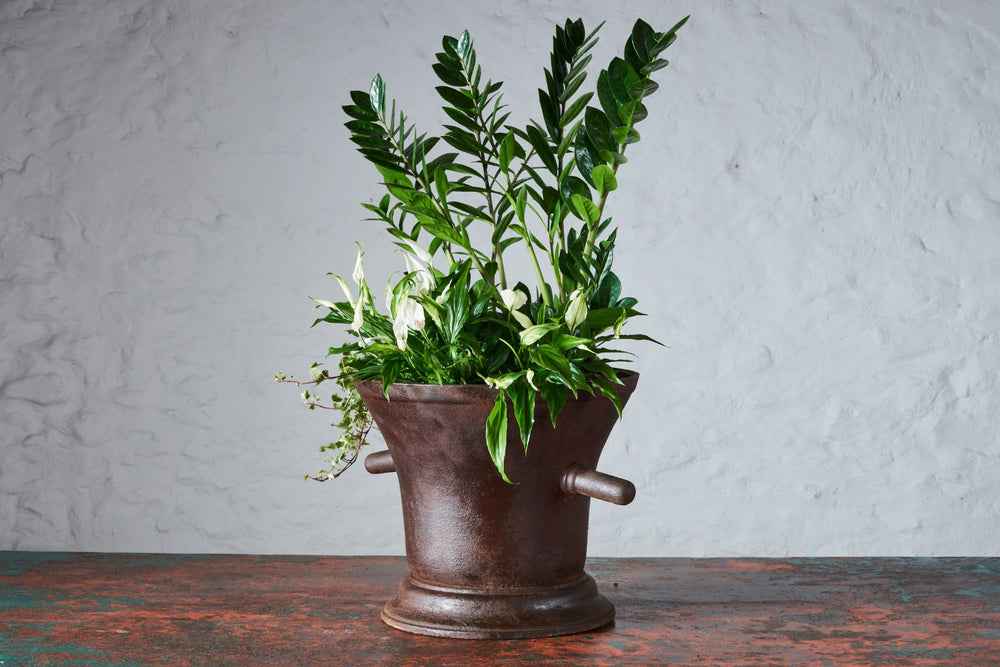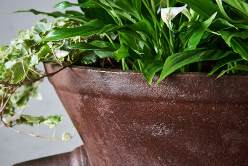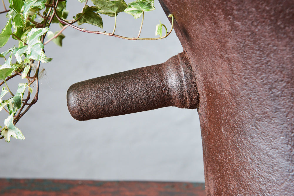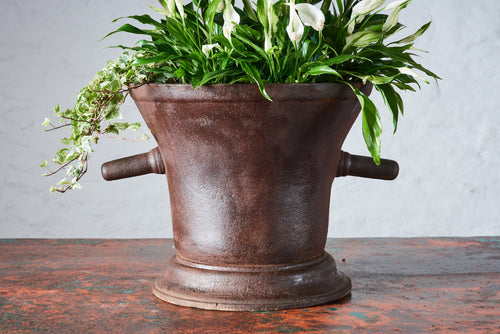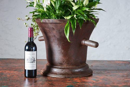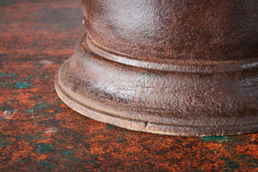 A cast-iron industrial mortar from the early 20th century in original condition. Quite heavy so will be unaffected by the elements we bought this piece with the view that it could be repurposed as a very attractive, unusual and characterful planter.