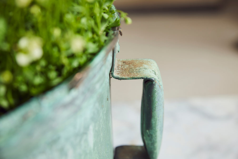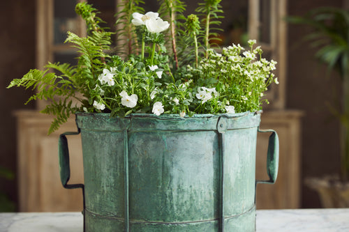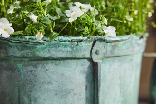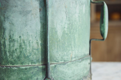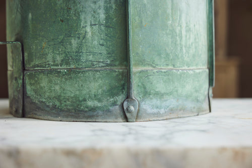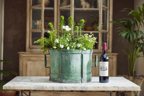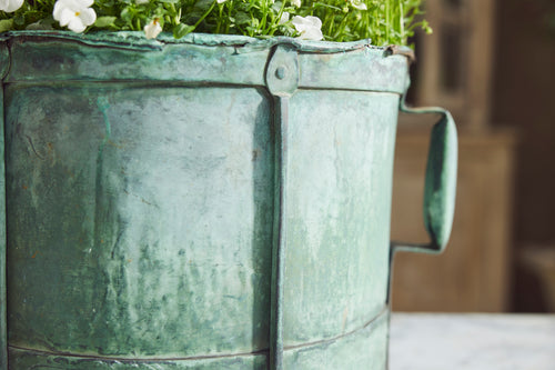 We love the shape of this verdigris copper planter and it reminds us of a drum. Gorgeous verdigris patina, panel detailing and handles on either side, found in the south of France and perfect for planting up with your favourite flowers.