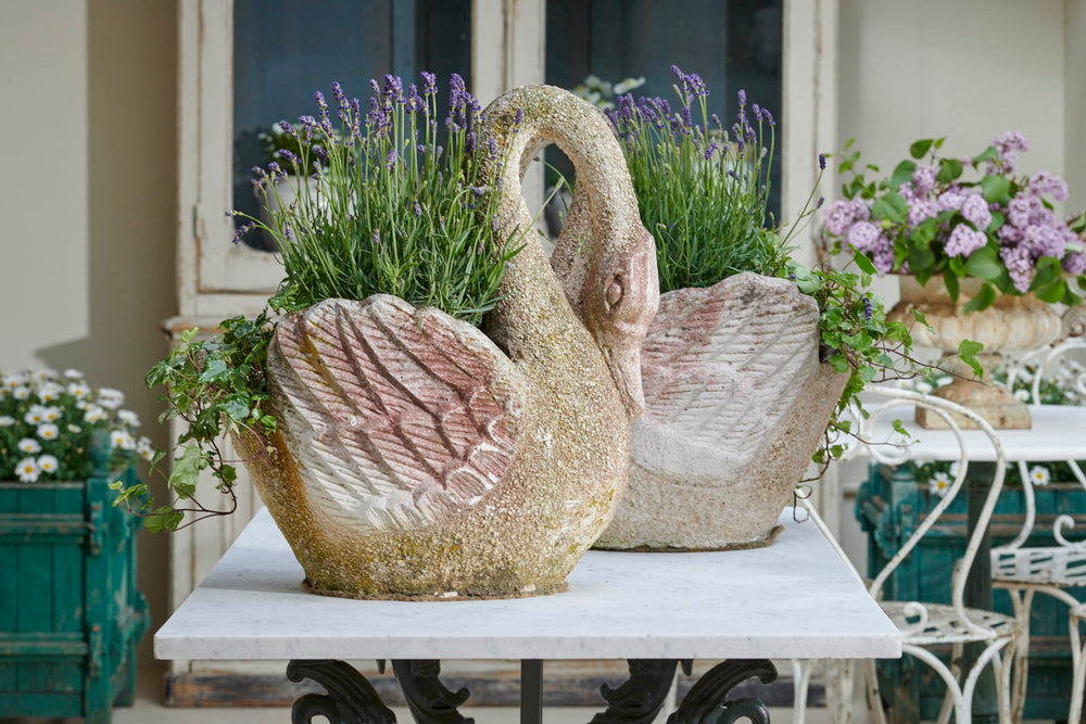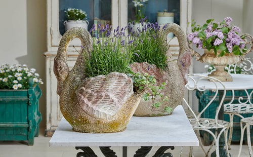 What is unusual about these swan planters is the quality of the finishing. Not only is the detail well defined but a pebble finish to the necks and parts of the body add to their originality and attractiveness. There is something about the graceful shape of the swan that lends itself perfectly to planters and they look fabulous with a delicate, floral planting scheme or as stand-alone ornaments.