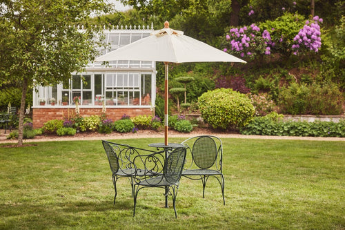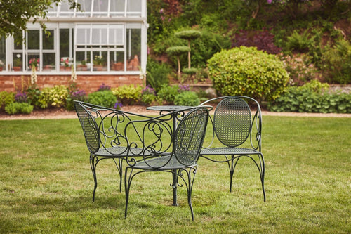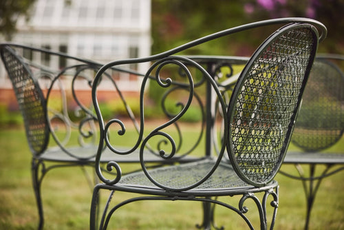 A remarkable piece of garden history, this rare mid-19th century bench was designed in for courtship as it allowed a young couple to sit together while a chaperone occupied the third seat.