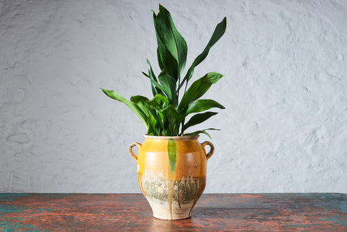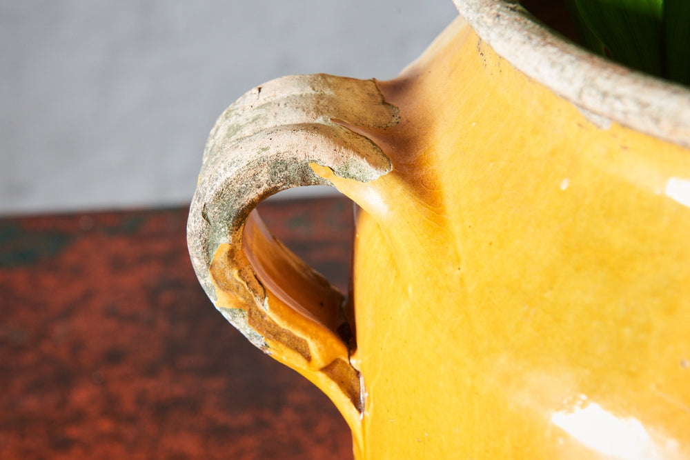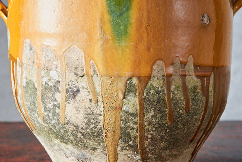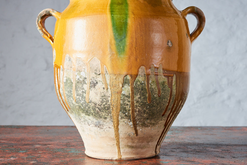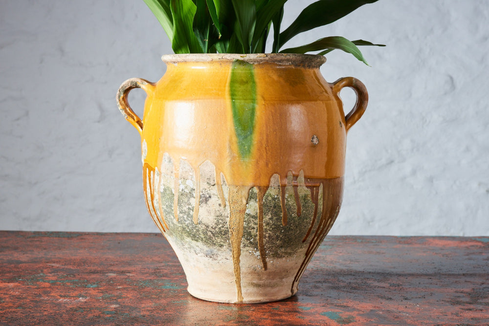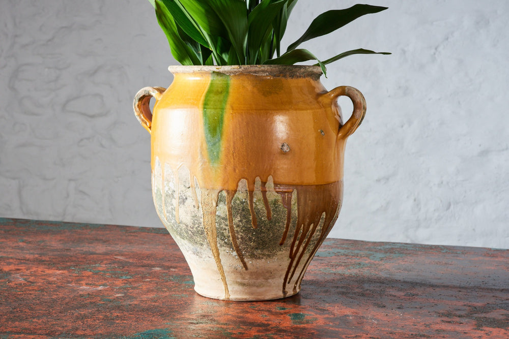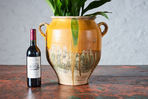 An extra-large 18th-century confit pot. "Confit" is French for "to preserve" and neat little pots like this one were used for preserving food over the winter. They have a very pleasing shape, with two small handles and a plump round body and make lovely ornaments or small planters.