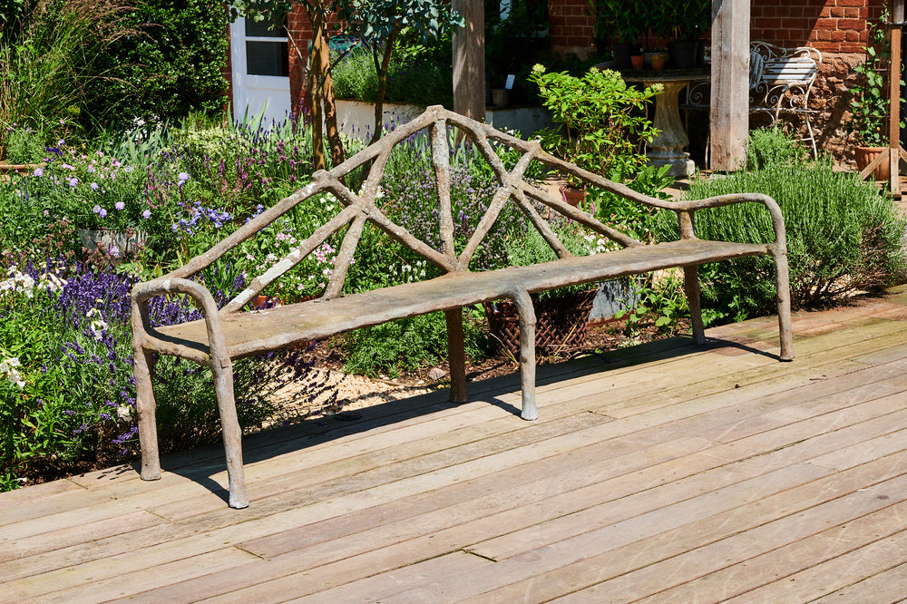 A very unusual and original faux bois (fake wood) bench. Made from concrete, carved and coloured to look like real wood this particularly fine example of the faux bois craft which originated in France in the late 18th century would be perfect in a woodland setting or as a centrepiece in any garden.