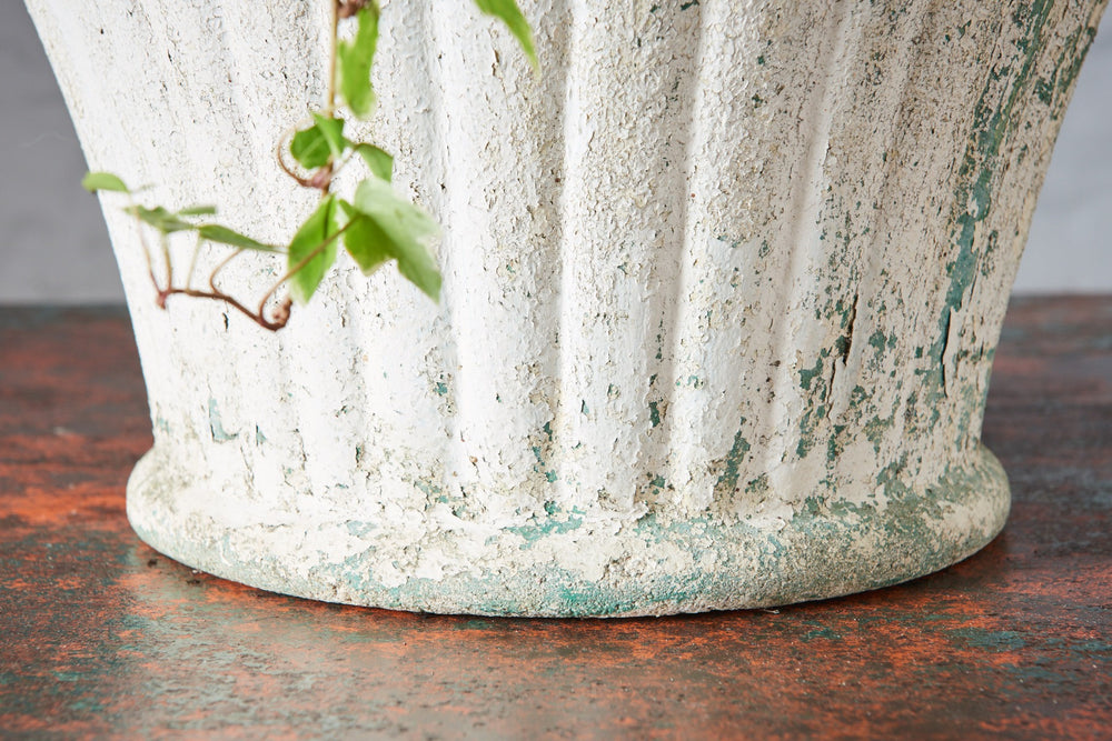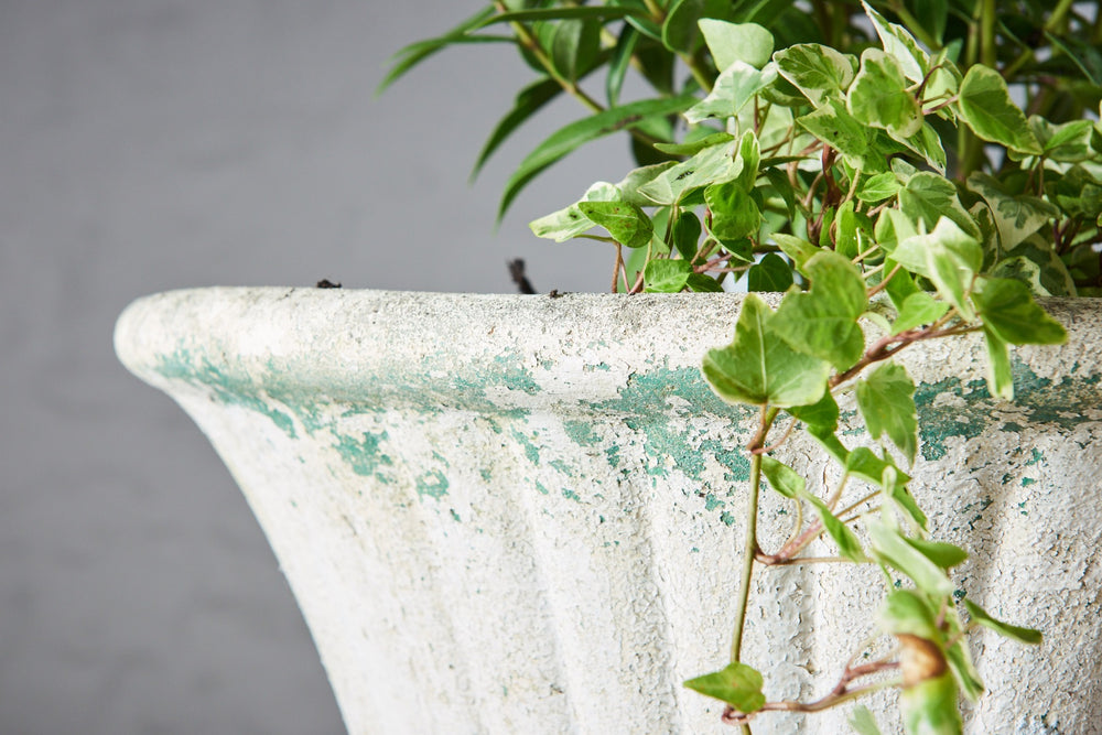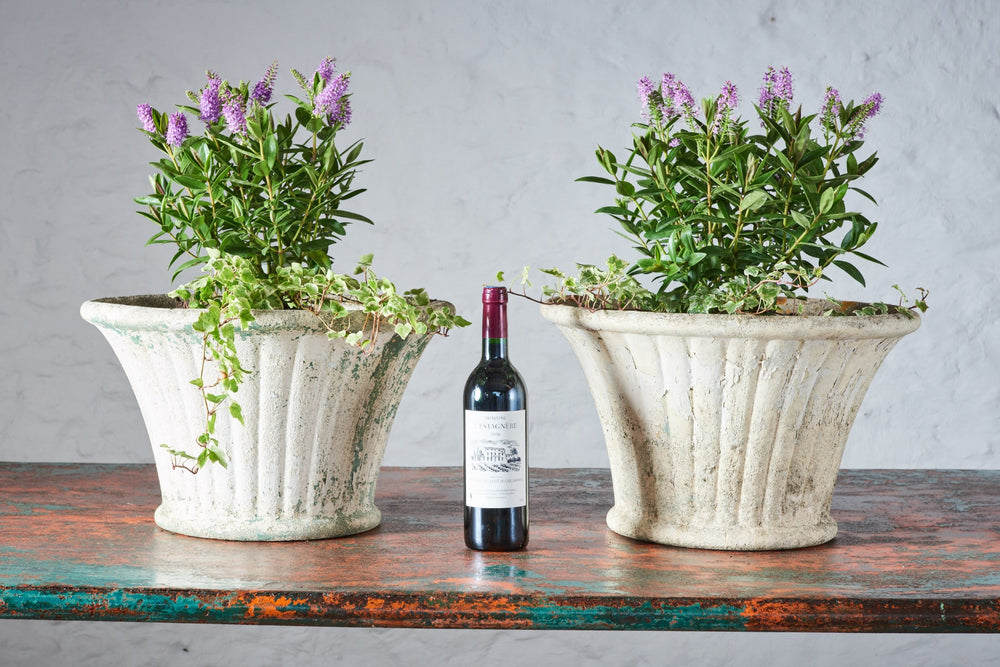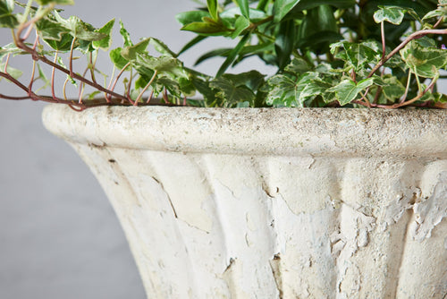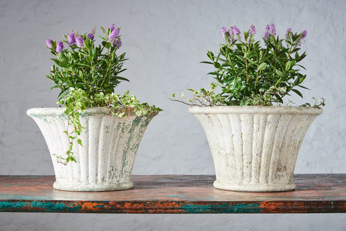 A pair of attractive composite stone planters in their original paint and in good condition. We were attracted to these by their simplicity and their aged patina which would suit a wide variety of planting schemes throughout the garden.