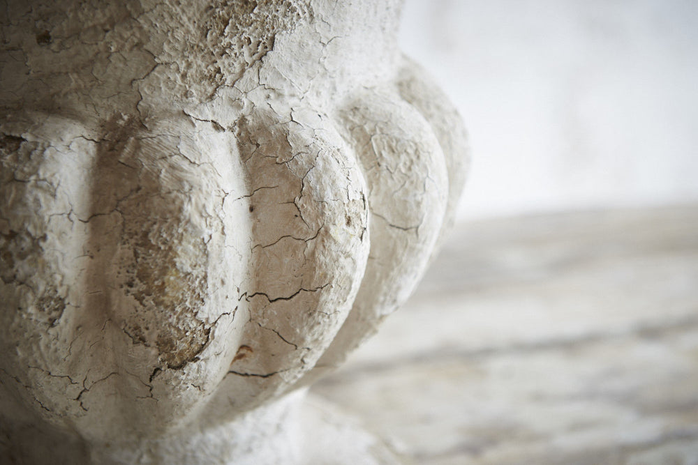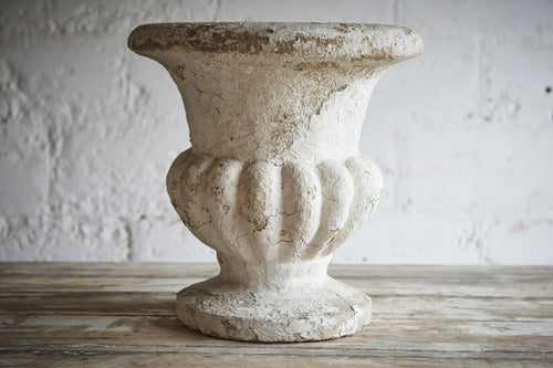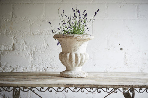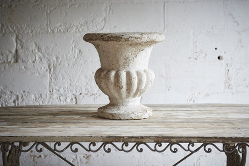 We found this lovely, large pot in a monthly brocante (a term that sounds so much more romantic than "flea market"!) in beautiful Arles, a city on the Rhone in Provence. The pot has a simple elegance, with a plain rim, a lobed body, and its original painted finish.
