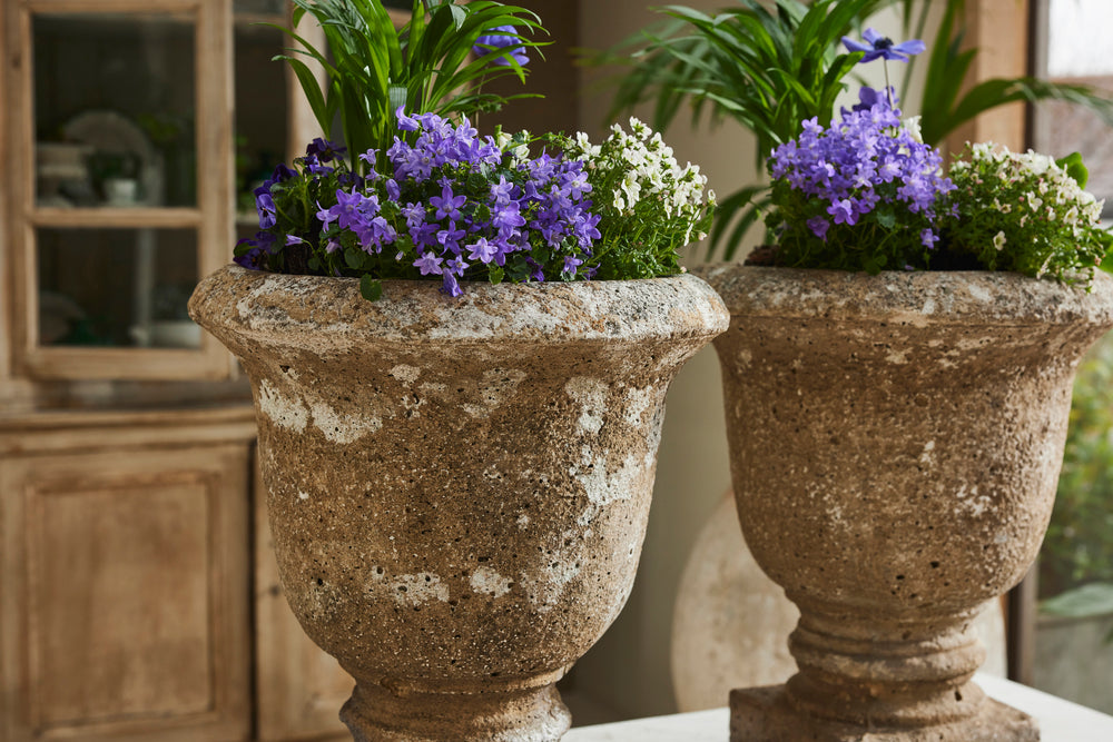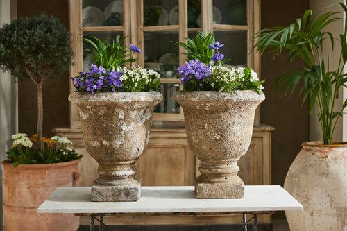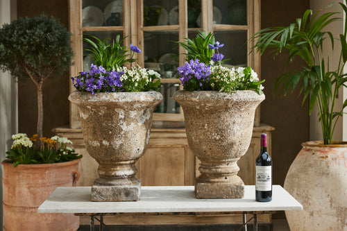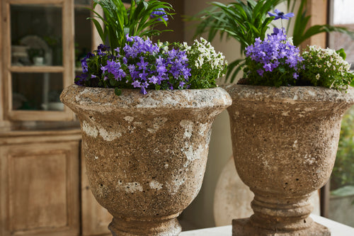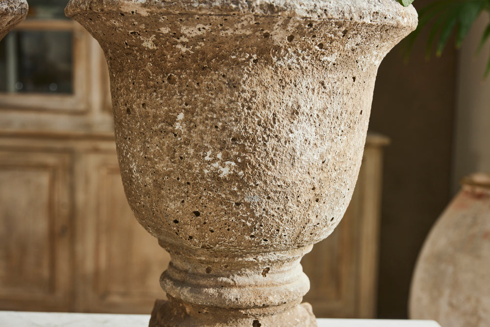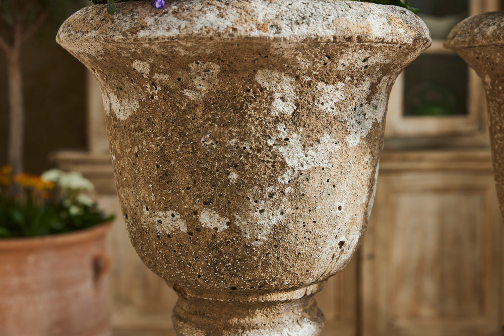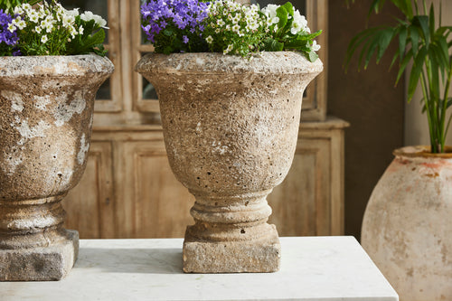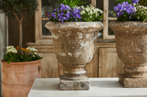 These beautifully proportioned urns originally lined the driveway leading upto a hotel in the South of France. They are all beautifully weathered and would therefore sit seamlessly into any mature garden. They are made from a composite sandstone and are just the right size to house seasonal plants and small shrubs.