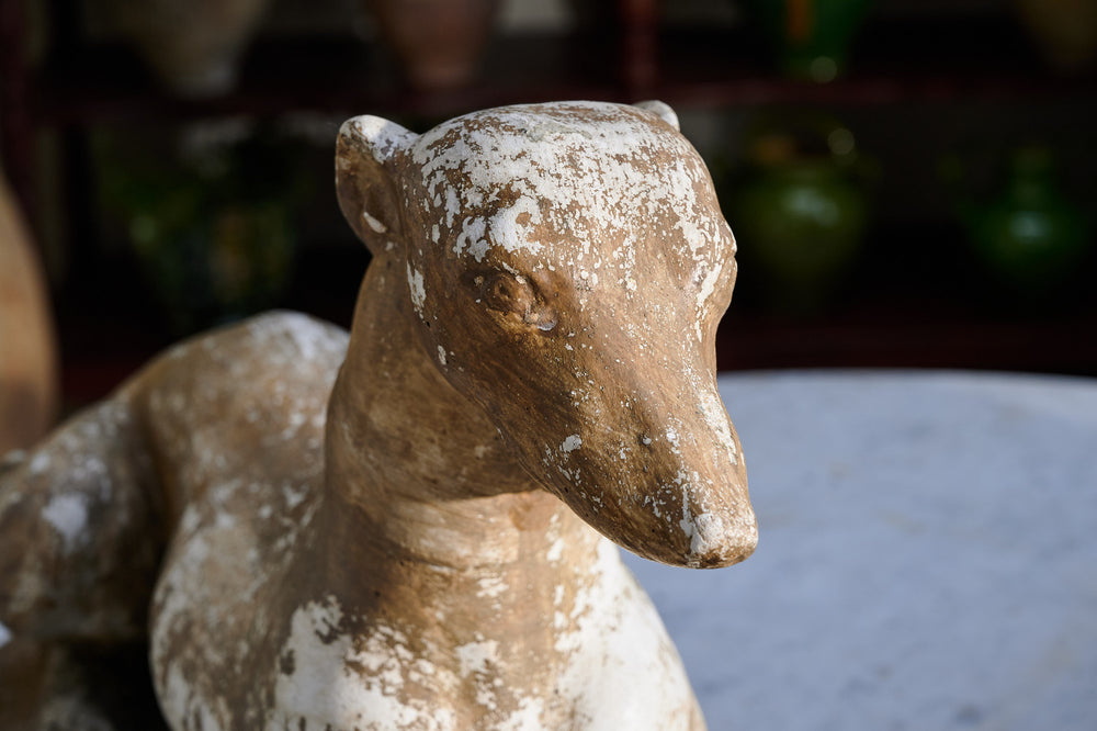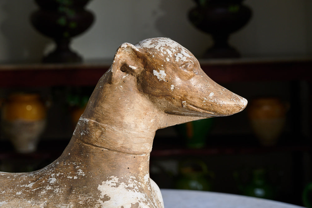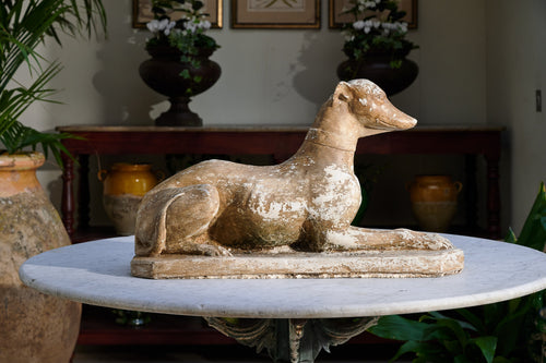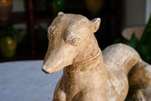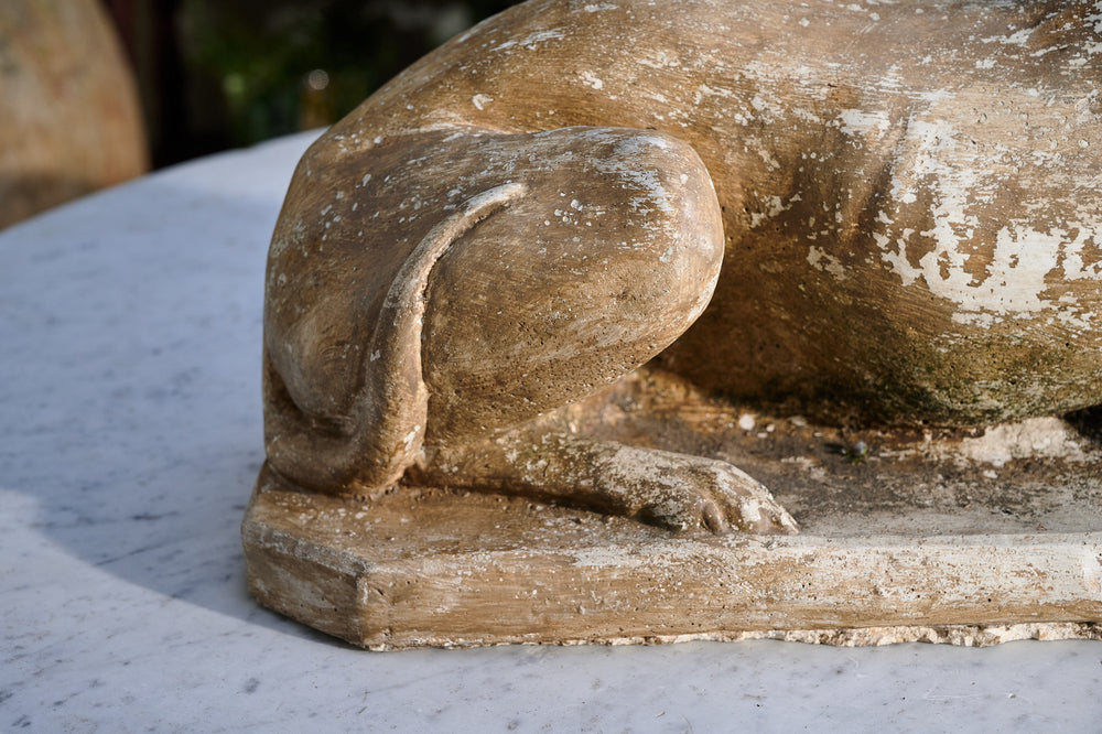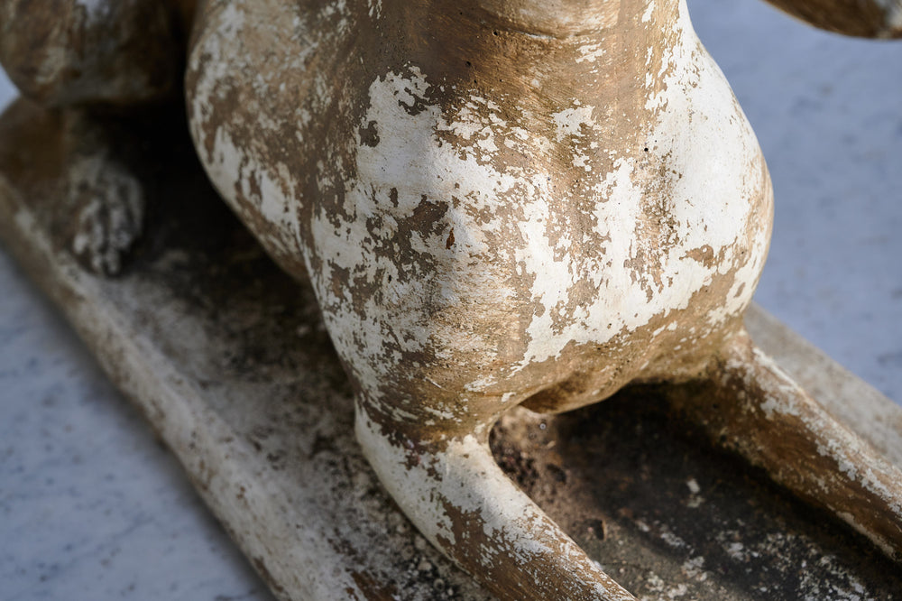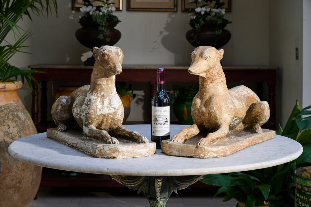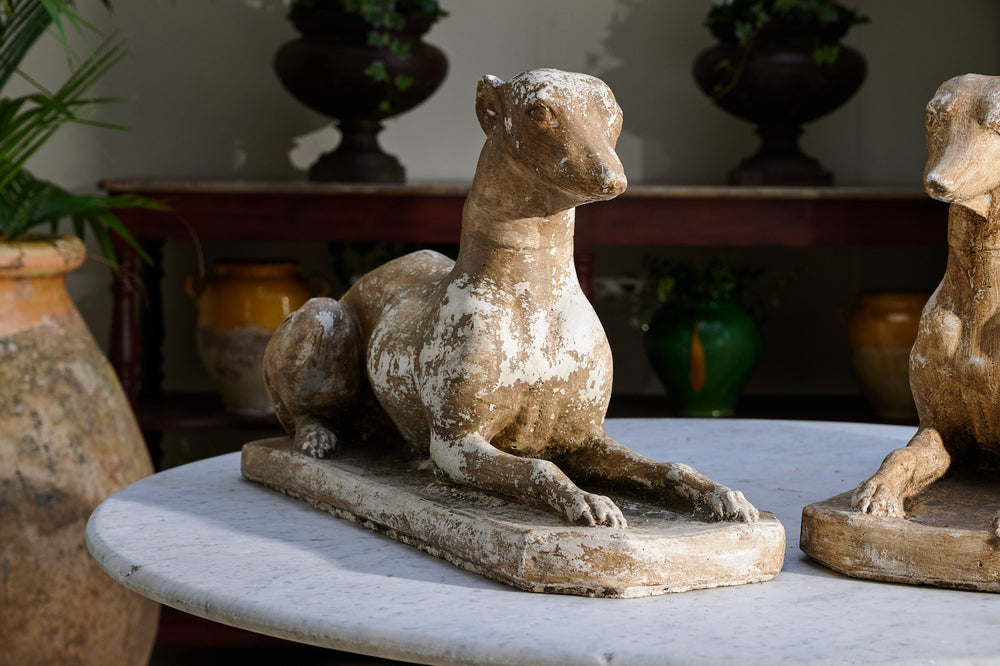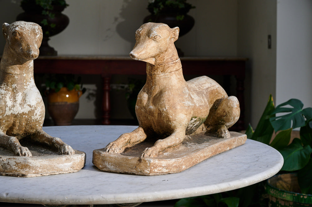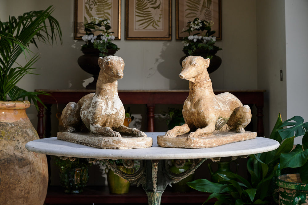 A pair of hounds who will guard your front door or sit by the fireplace without ever requiring a walk! Made of composite stone they are coated with a painted lime mortar which gives them a smooth luxury feel.