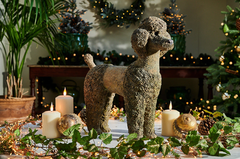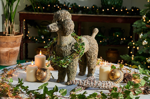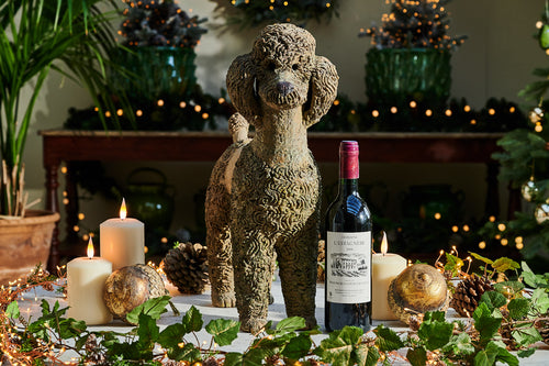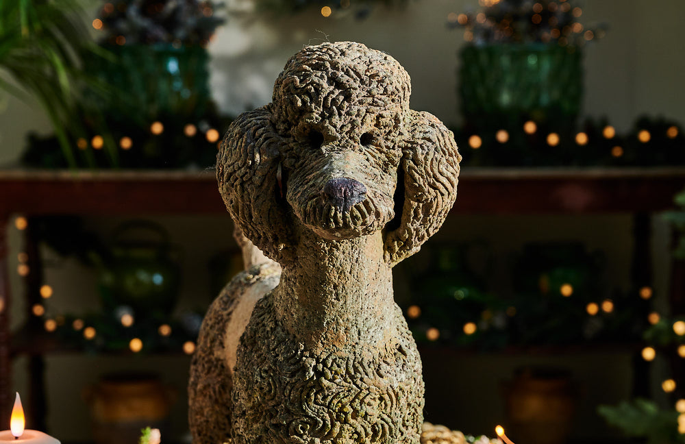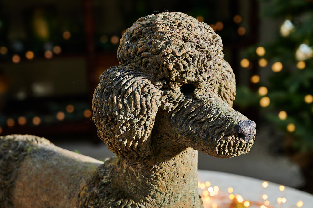 This life-sized miniature poodle is made from composite stone with a knowing look on his face. Would add character and fun to any garden.