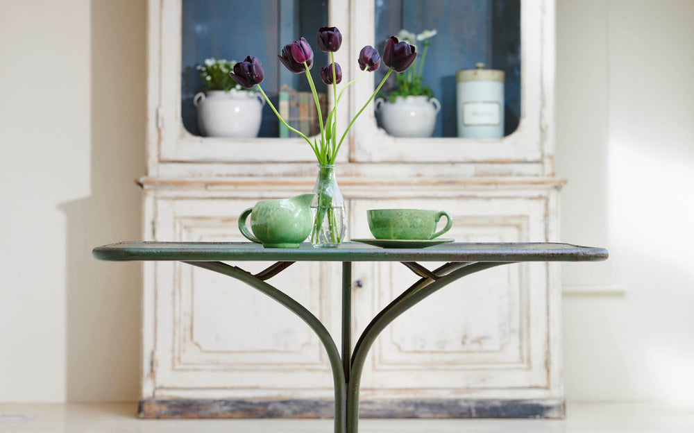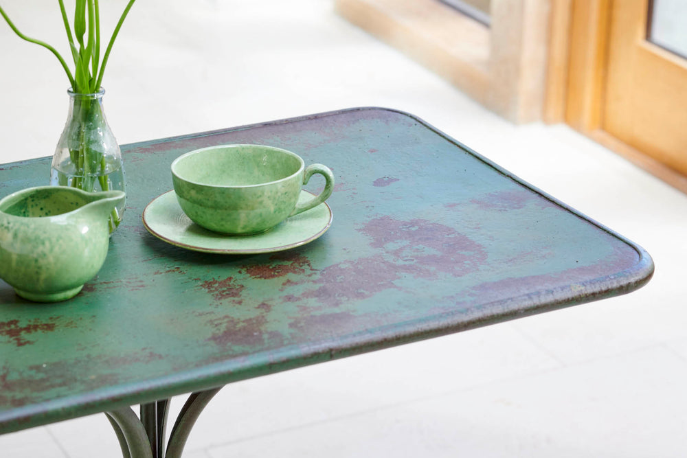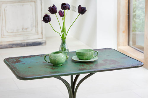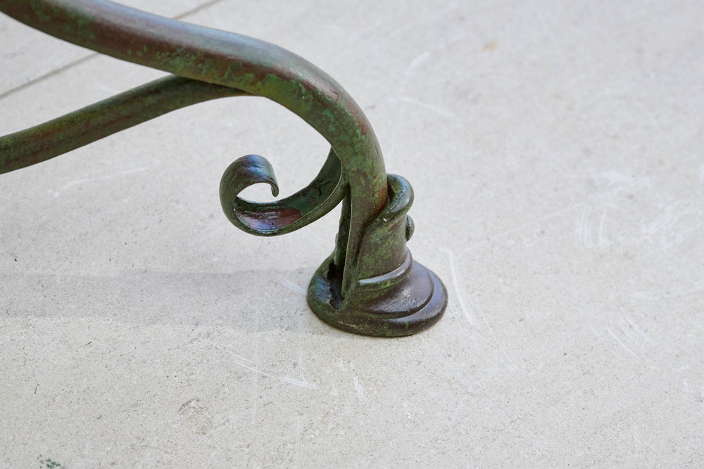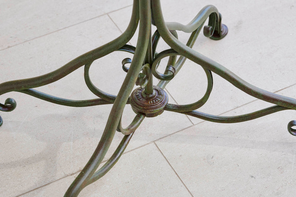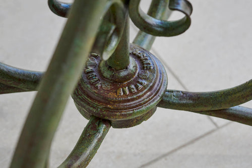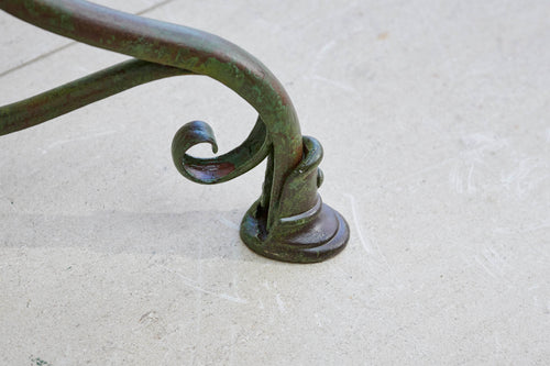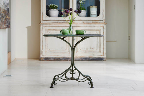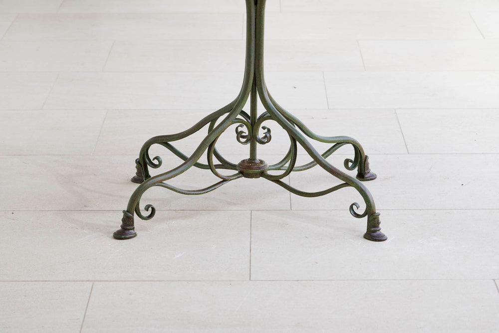 A really lovely wrought iron Arras table that has developed a wonderful green painted patina. The classic hoof feet date the table to around 1900. It is in excellent condition and whilst originally designed for the garden would make a lovely side table inside the home.