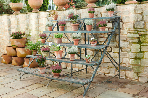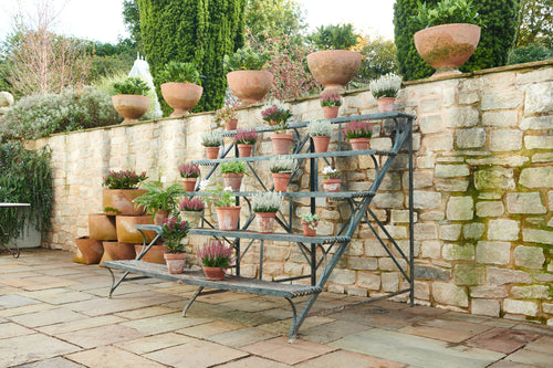 A very rare and substantial Arras plant stand. This would have originally been used by plantsman in a greenhouse to nurture vast quantities of seedlings over the winter months. We believe the size of this stand is a significant opportunity to soften areas of hard landscaping to create an interesting terraced planting scheme and many other uses.