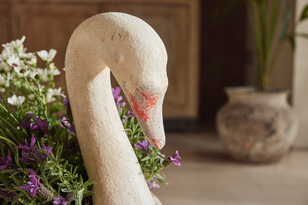 We love these 1960s swans as they make such attractive planters. This Italian pair is particularly stylish with curved necks, subtle features and a weathered patina. They are made from cast cement and are in very good condition.